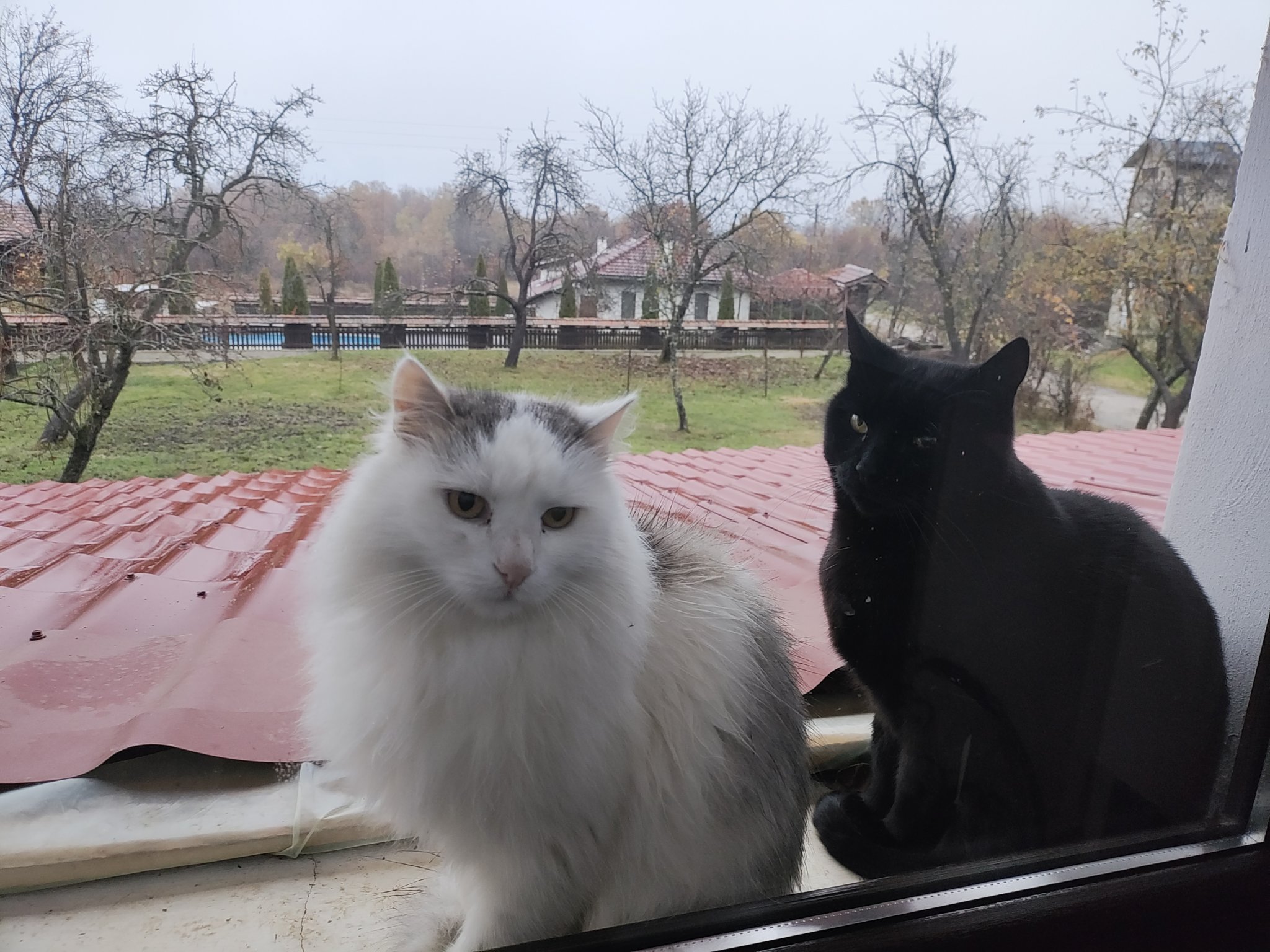 Здравейте в този дъждовен ден. Моите котки да все повече вътре на топло, или кацнали над гаража, да наблюдават от високо.