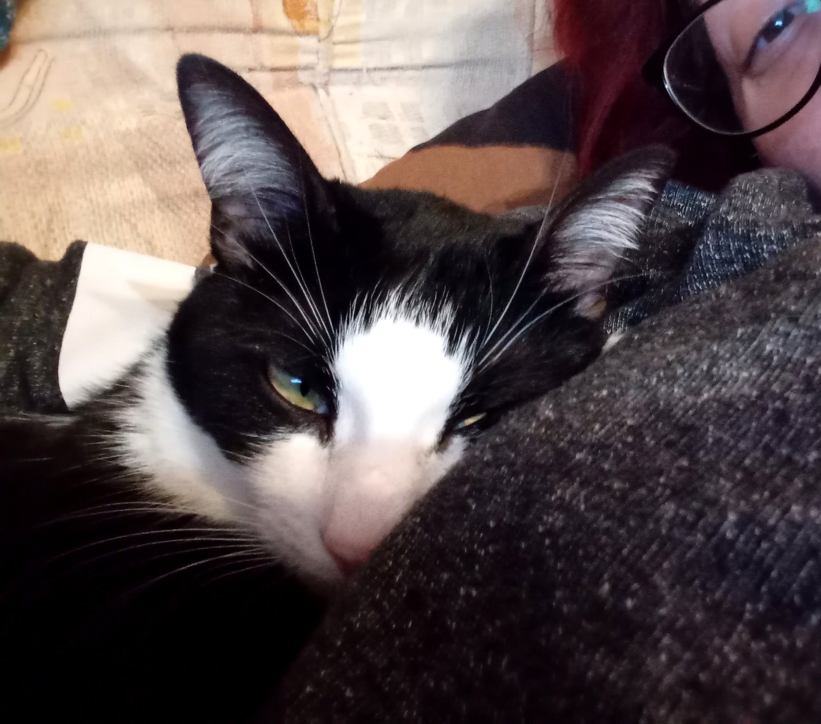 *и го прави след като сме почнали да се галим сладко, докато си лежим гушнати на дивана, мърка и изведнъж решава да ми нападне ръката :/