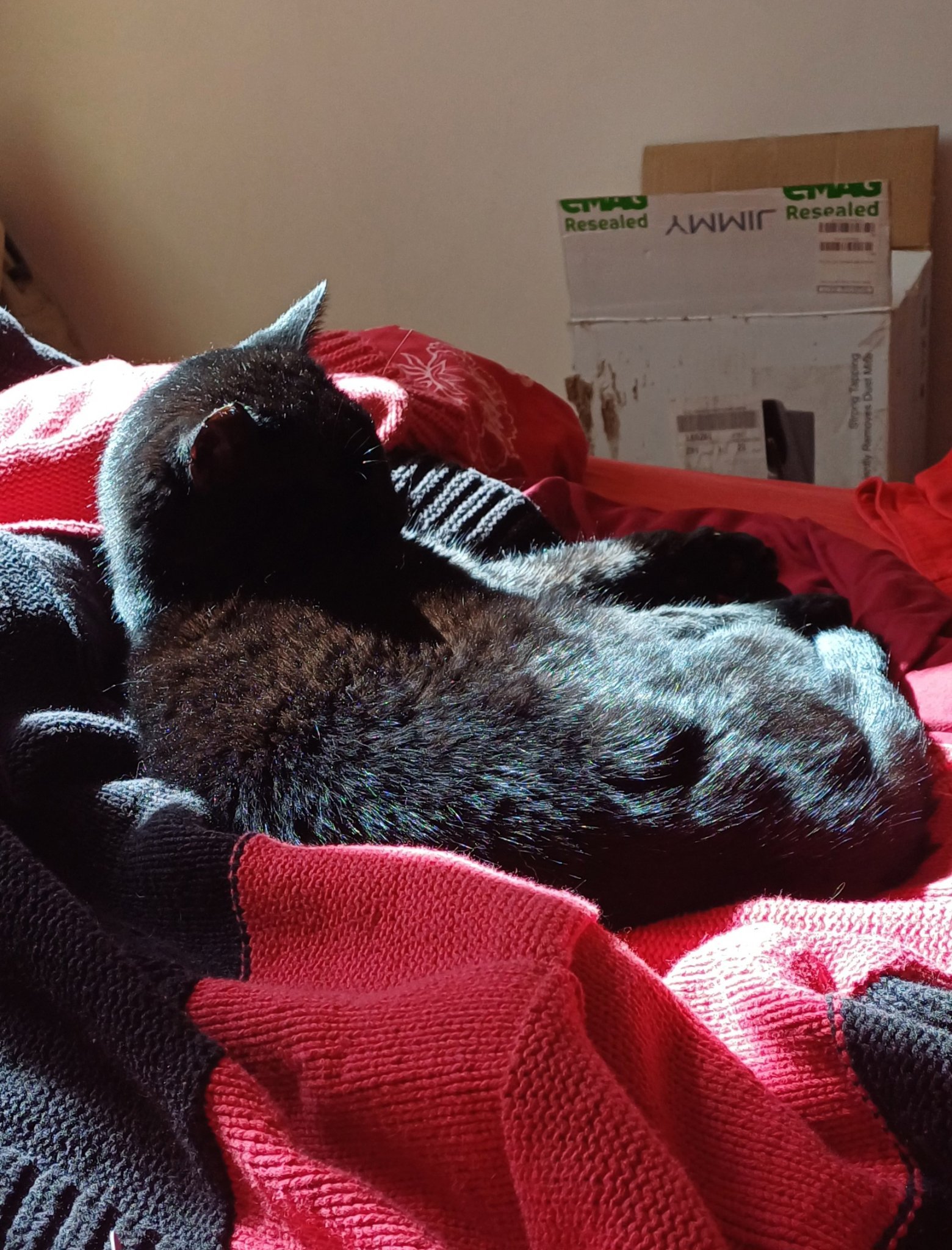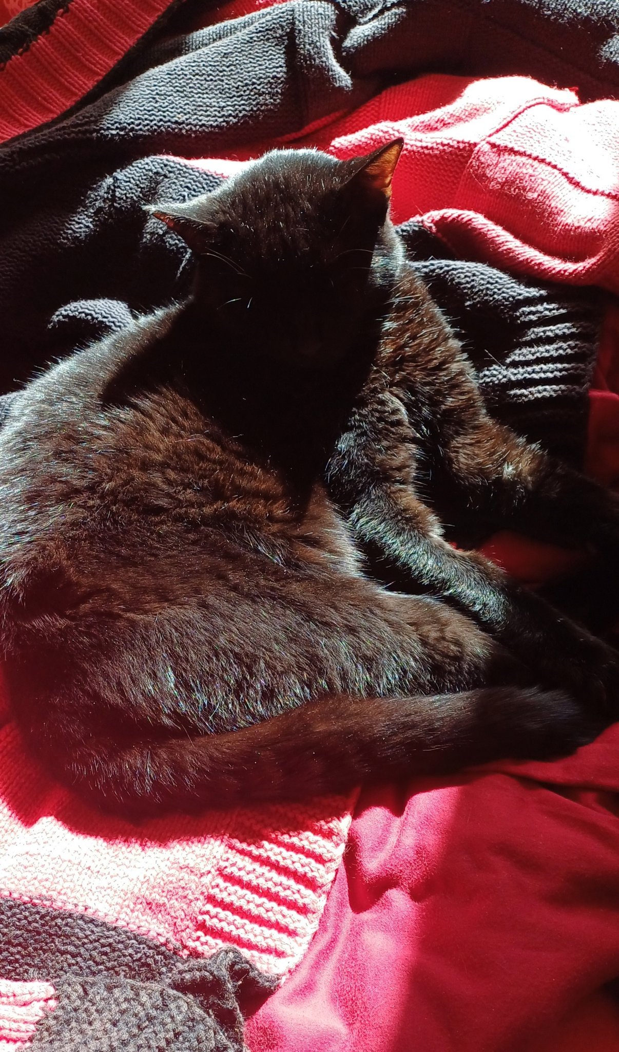 Когато съседите докараха друга ранена котка, която бяха спасили, Блеки не успя да ср разбере с нея и просто се нанесе при нас.Знаела е, че я обичаме, а ние разбрахме, че и тя нас.Вече почти 2г е на “мама момичето”, а ММ ѝ казва” дъщеря ти”😀.