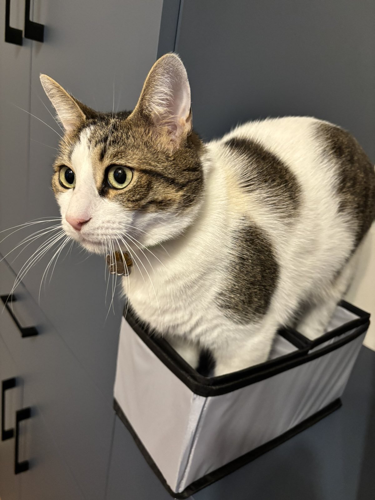 Бебе баш не съм имала с котка. Малкия син беше на 4. Много се радваше на Кети, галеше я, решеше и после я гонеше из апартамента, защото умираше от смях как ѝ се клати дебелият корем и бяга с късите крачка. За това тя се научи да го избягва. Но когато съм се карала на детето, винаги е идвала и захапвала леко или крака ми, или ръката. Сякаш да го защити. Кети, която ме обожаваше. А малкият който има всякакви други алергии, към котки слава богу няма.