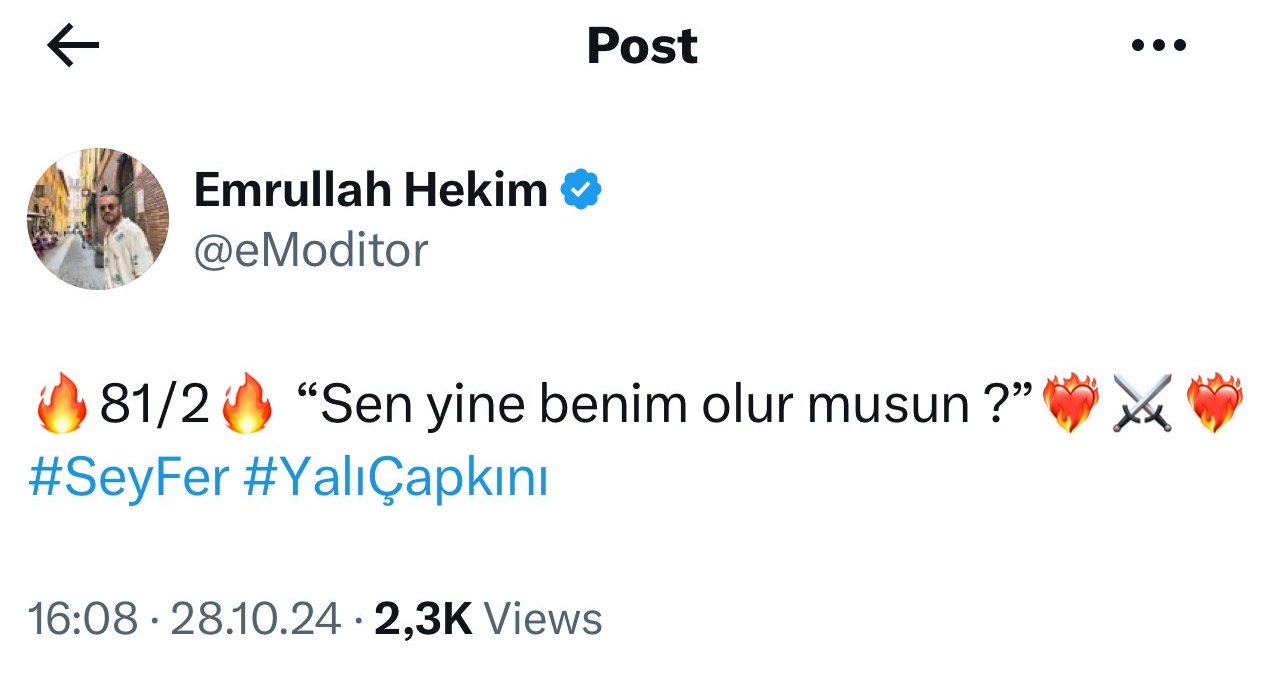 Прекалено хубав фраг,за да е хубаво...Аз мисля, че преди Сейран да му отговори,някой ще влезе да го търси и сватба или подготовка за сватба ,ще има...