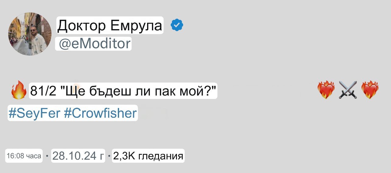 Само да не се окаже, че е реплика на Дияр към Ферит Joy или обратното, че тогава ще видим ние Hug