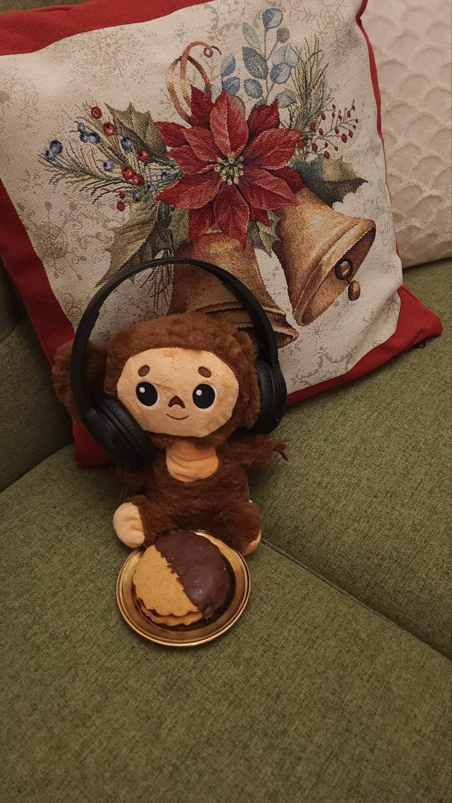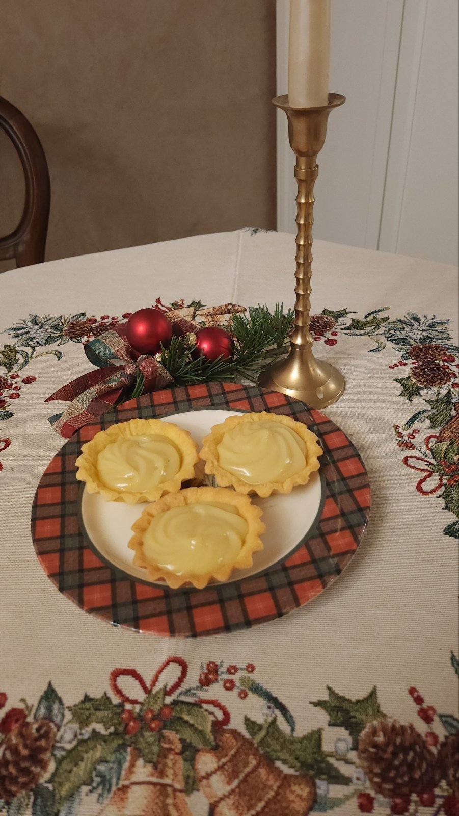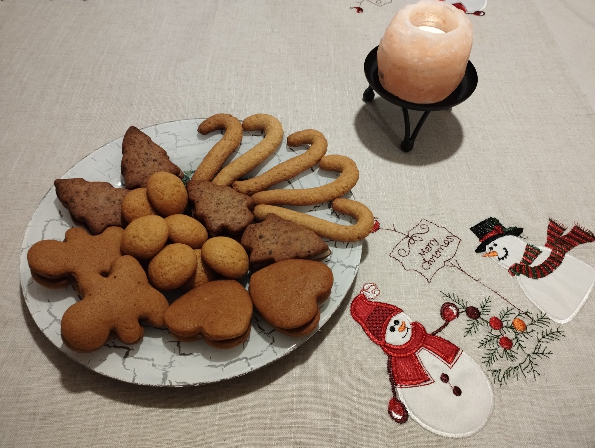 Платото включва Алфахорес, меденки с два вида мармалад и шоколад, бисквити с фъстъчен крем, виенските бисквити, декорирани с шоколад, ядки и домашни озахарени портокалови корички, линцери и ангелски очи (може и да пропускам нещо, че мозък не остана с този зъб). Апропо, ангелските очи са оранжеви и странни на вид, защото се оказа, че съм отворила бурканче с печените ми праскови за други десерти, а не с конфитюр, ама ги ползвах, стана вкусно поне:
