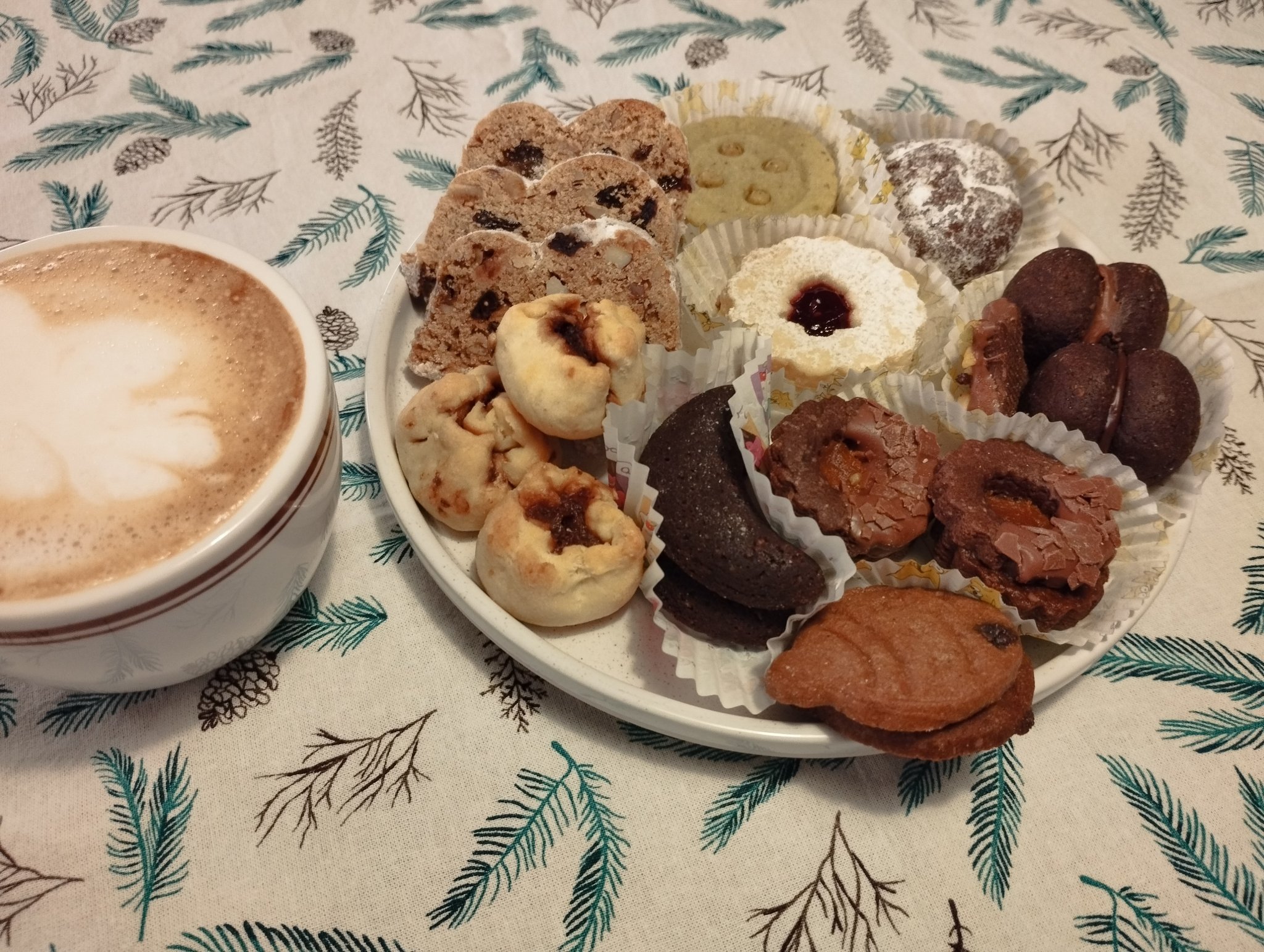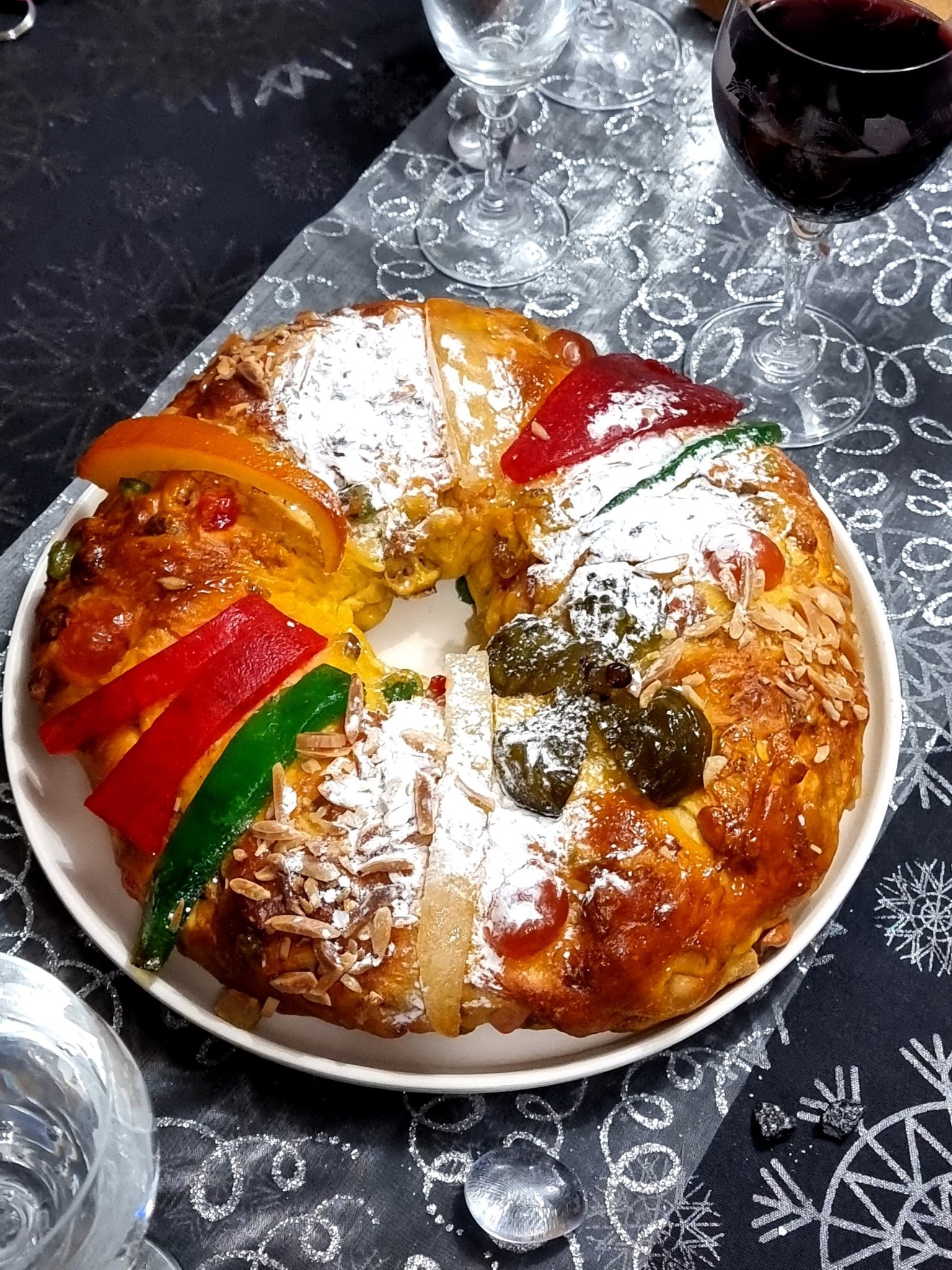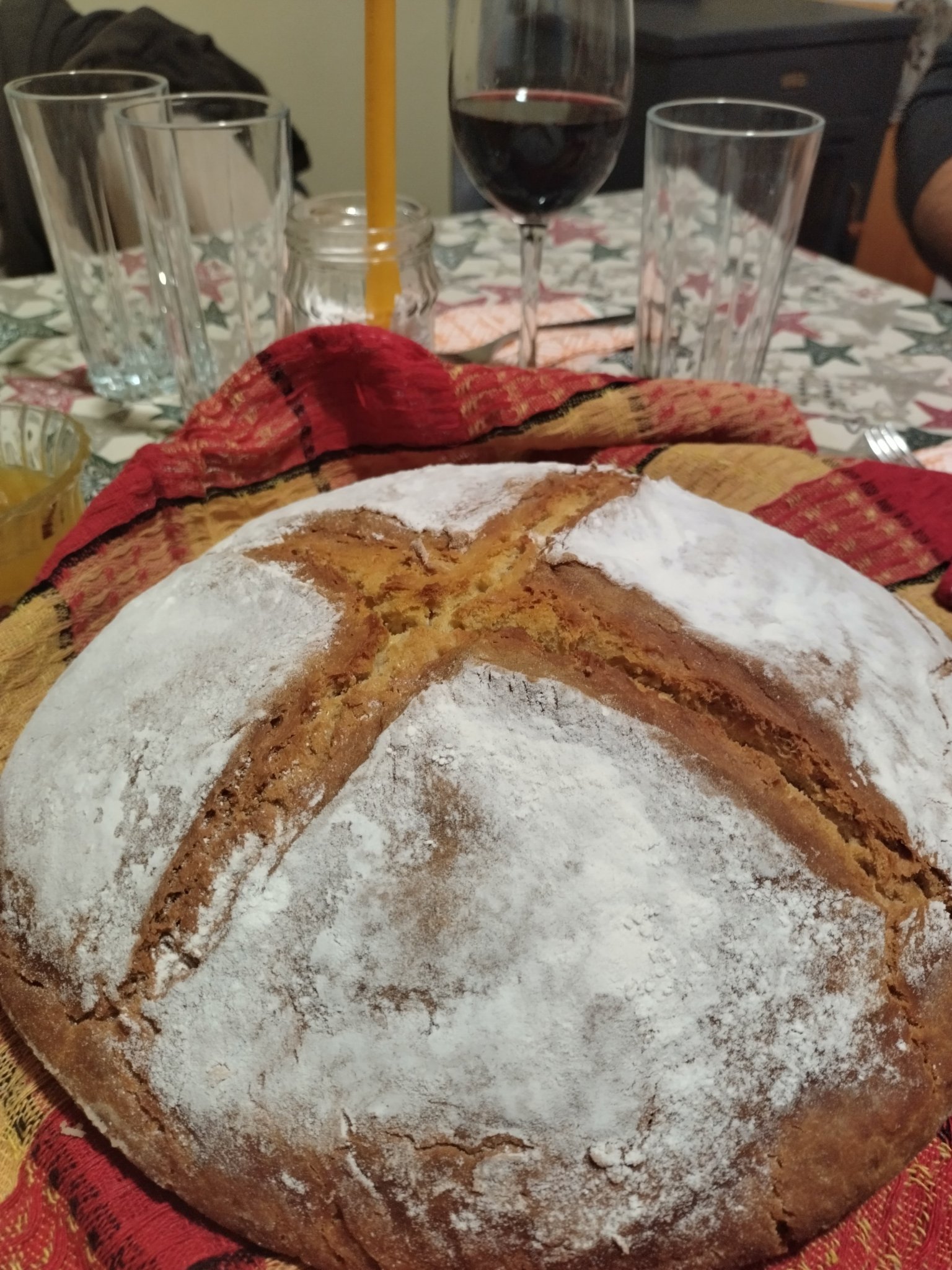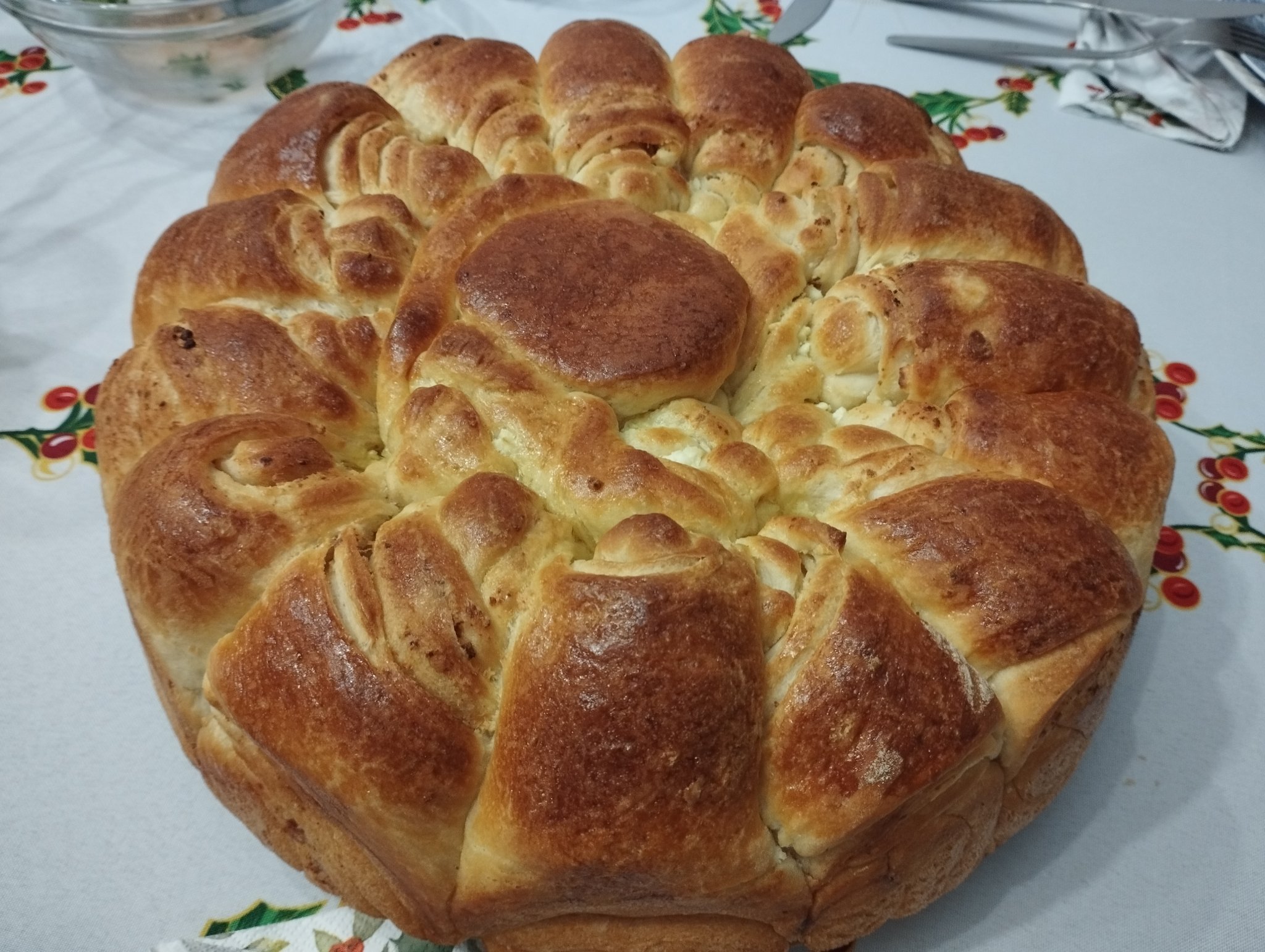 ), но да ви почерпя с едно печиво (купешко), което донесе свекърва ми. Тя е португалка и в Португалия се прави този традиционен сладкиш - много козуначено-бриошоподобен и гарниран с изобилно количество кандирани плодове и бадеми.