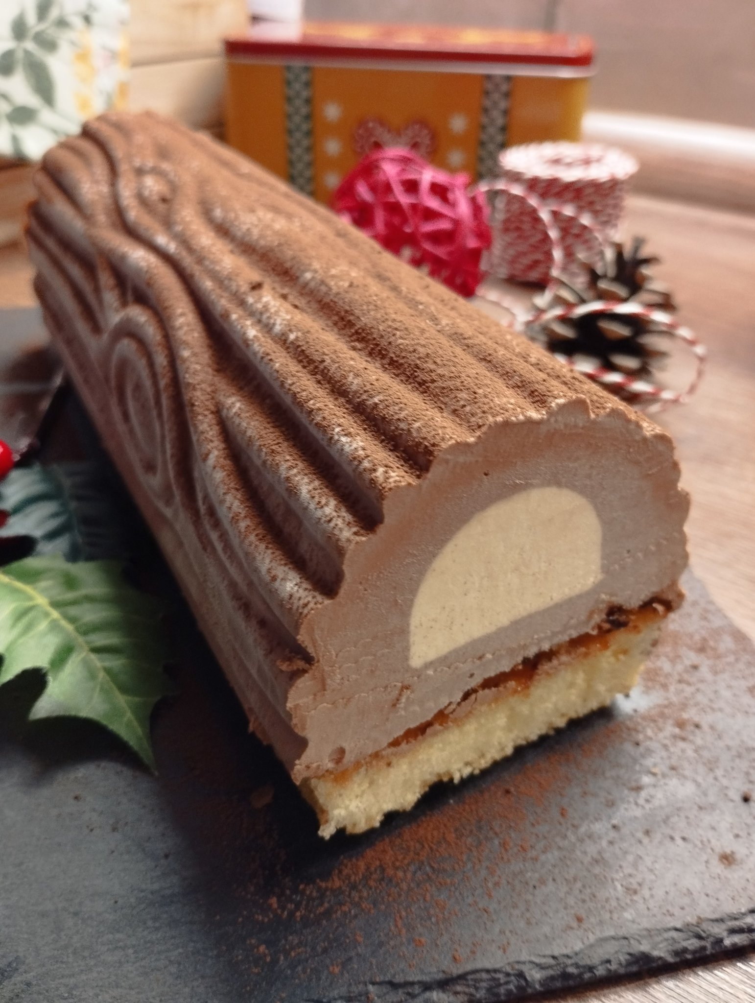 ), среда от карамелов мус, орехов пралин и блат Мадлен с ром. Не стана перфектно, но за набързо, толкова.