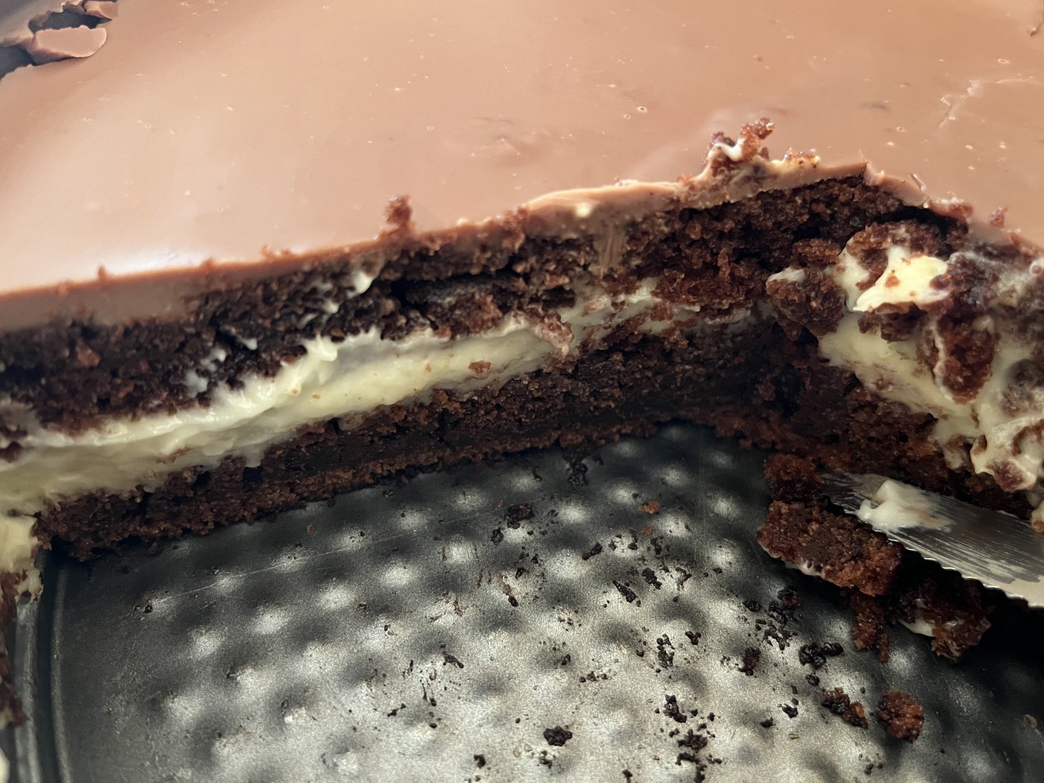 , но компенсира с вкус. Блатът ми се напука много отгоре. Не успях добре да го срежа, третият блат тънък и се разпадна още при рязането, като за първи опит става.