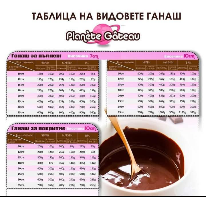 Ганашът, както е писала и Марчева, е основен вид крем с основни съставки шоколад и сметана, може да се добави масло (аз си добавям винаги и често смесвам тъмен, млечен шоколад и сметана), карамел, мед, а при при използването на бял шоколад - и разни плодови съставки, напр. някакво плодово пюре.