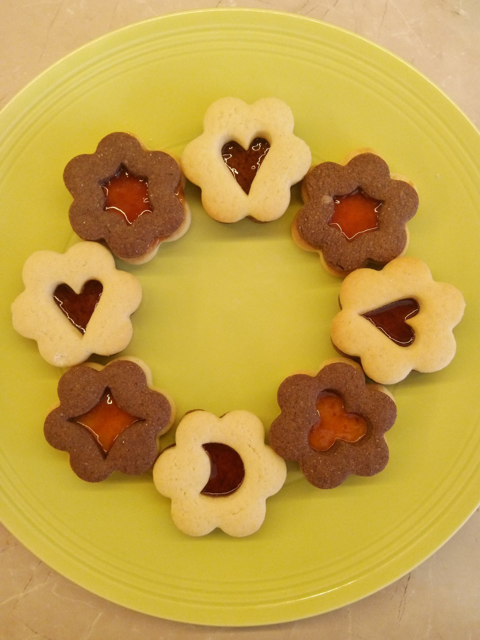 Тестото за линцерите на Наталина ползвам за бисквитки с фонданов принт за децата, защото повече ми харесват от меденки. Отделно си ги правя и като линцери.