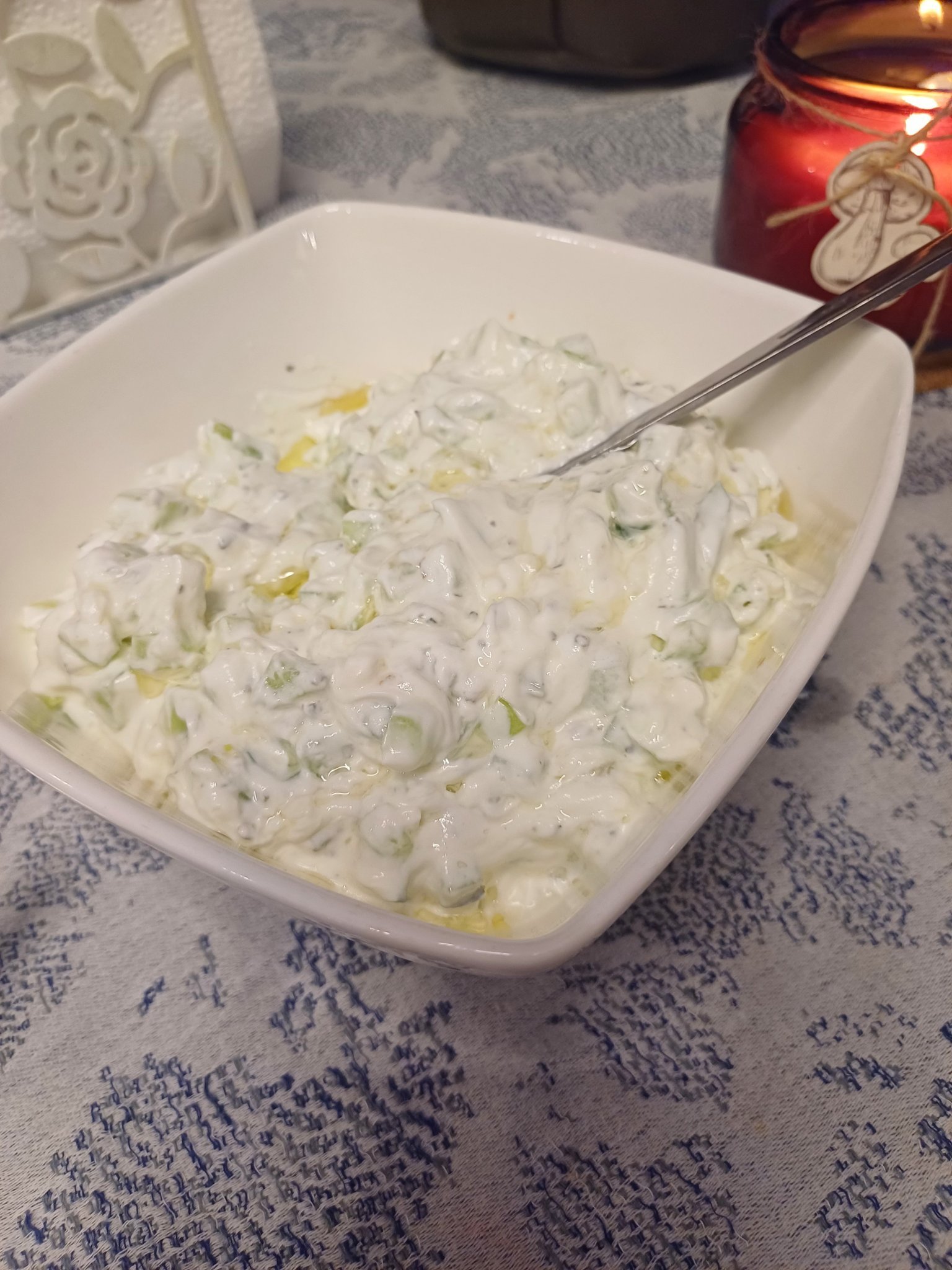 - бутер тесто, кашкавал, салам, кисели краставички.