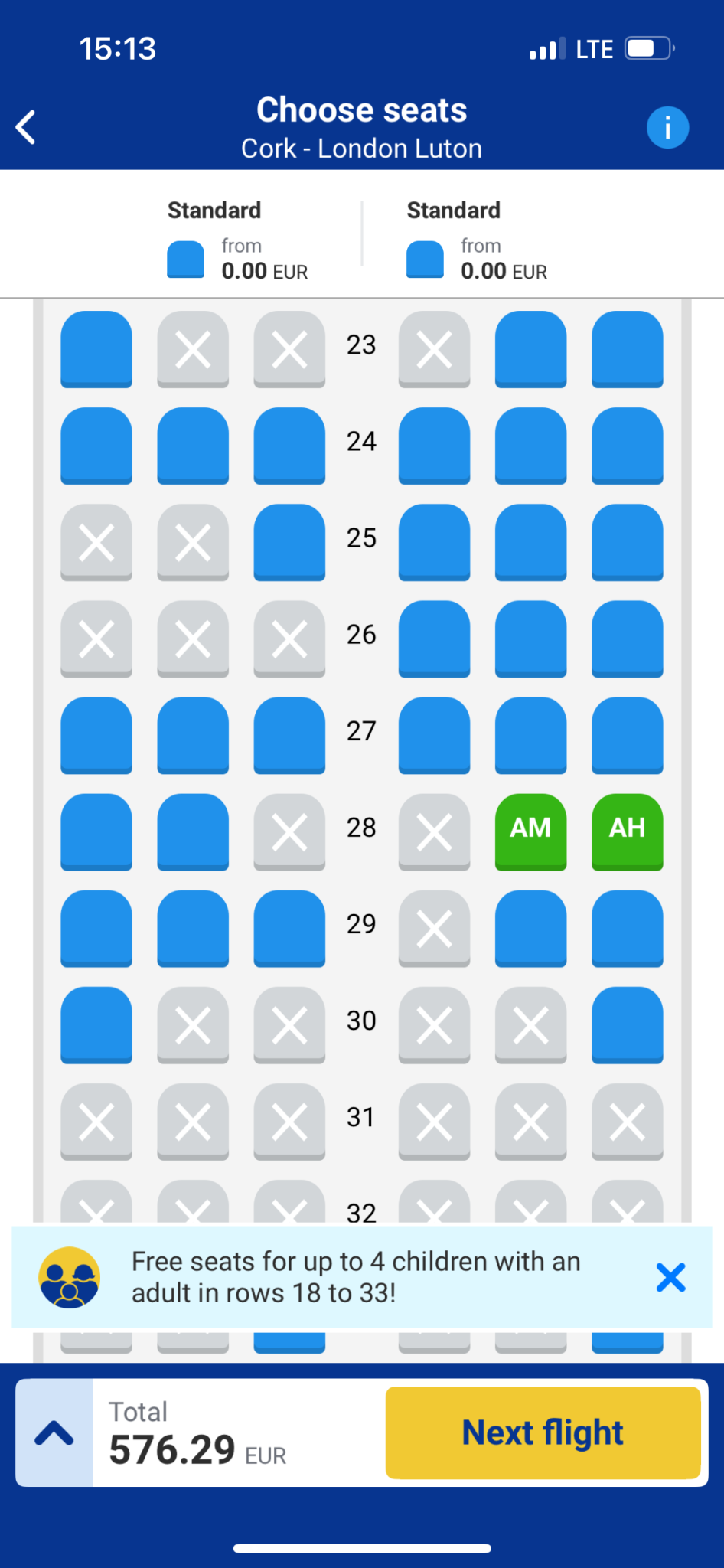 Току що пробвах и аз. Полет от Корк до Лондон. Безплатни са от 18 до 33 ред дори и при бейсик тарифа.