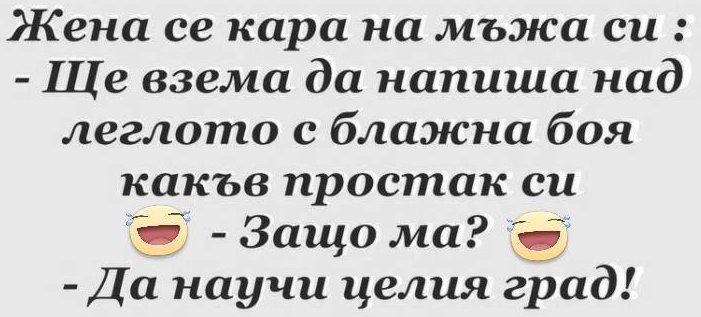 - Стига си ме лъгал, и литър женски парфюм да си излееш на главата пак виждам, че си играл карти с приятели. Поне молива да беше махнал.