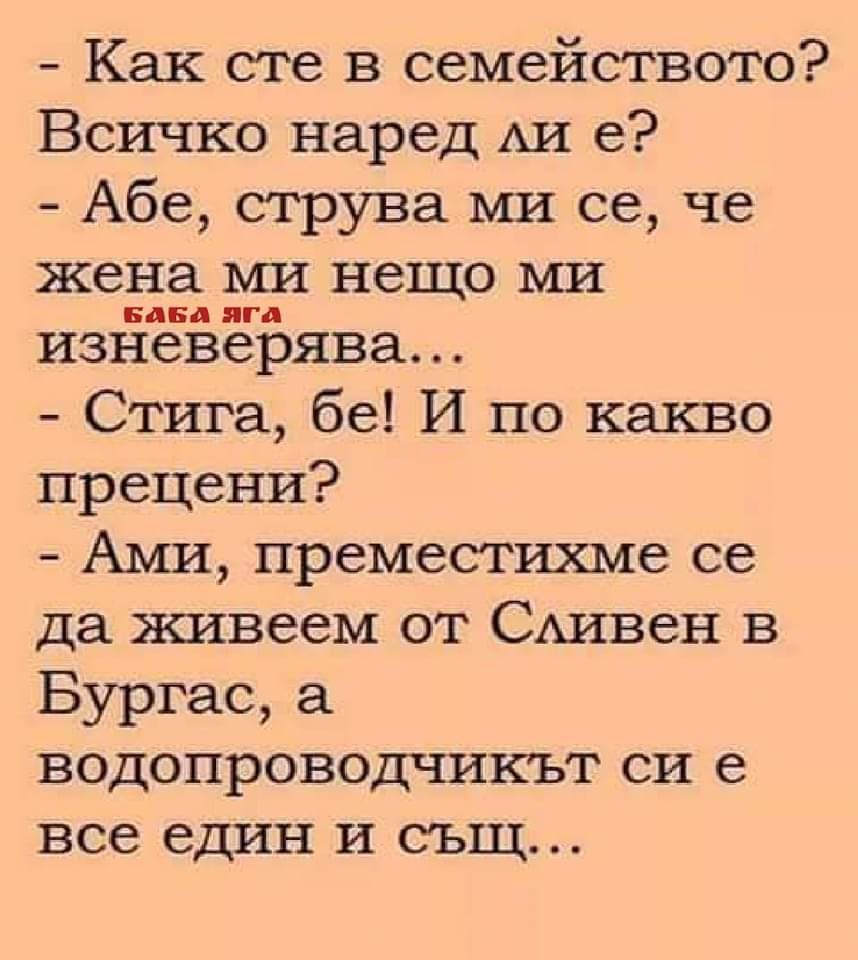 - Ха, че защо ще ходите на п*тката си майна, когато на един к*р място правят кафе, да си *бе МАЙКАТА!...