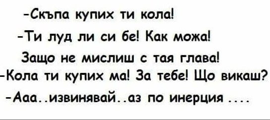 - Защото идвам да ти кажа да си събираш багажа. Загубих те на покер от Пешо и след малко ще дойде да те вземе.