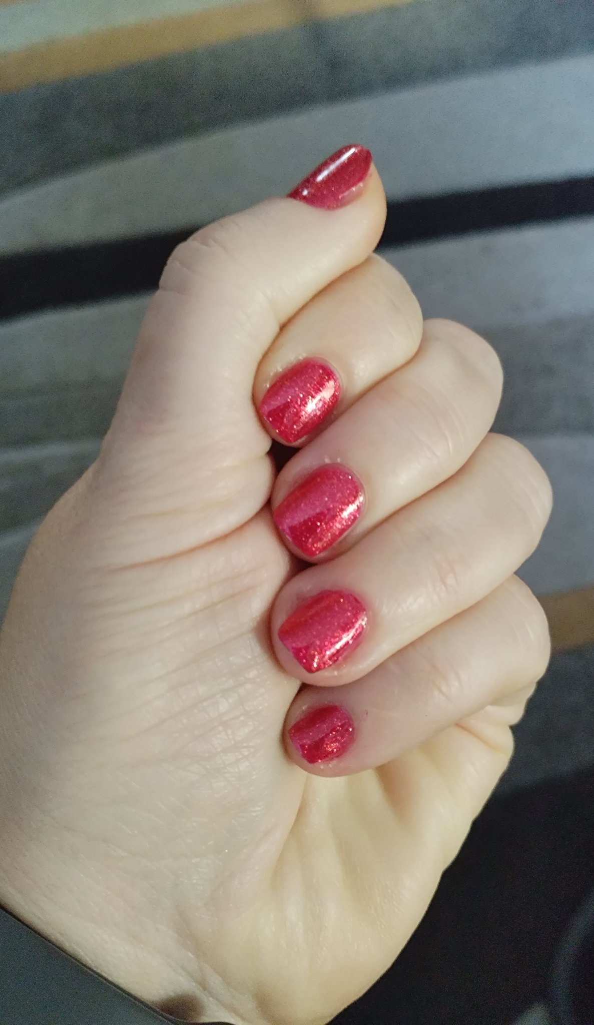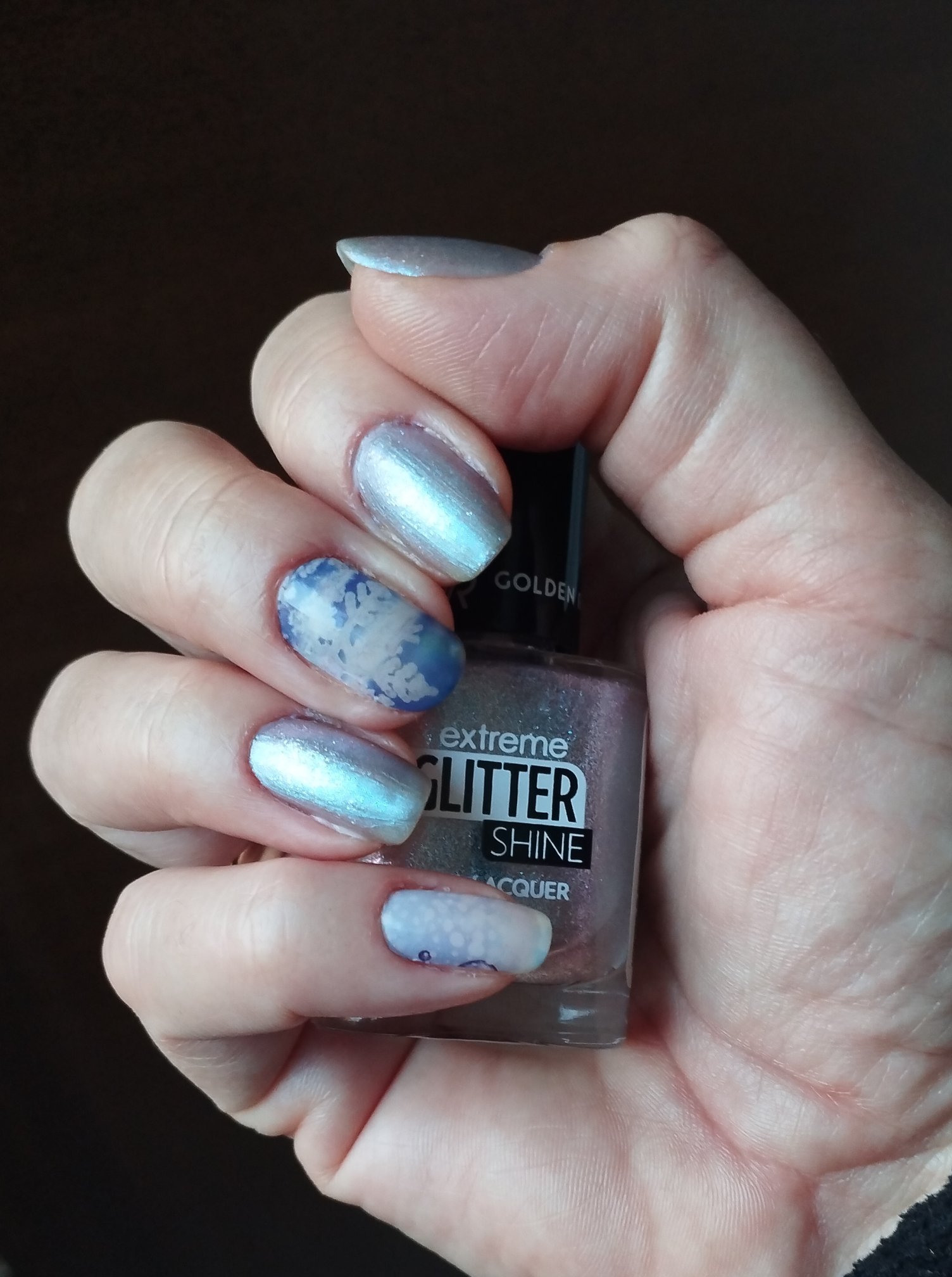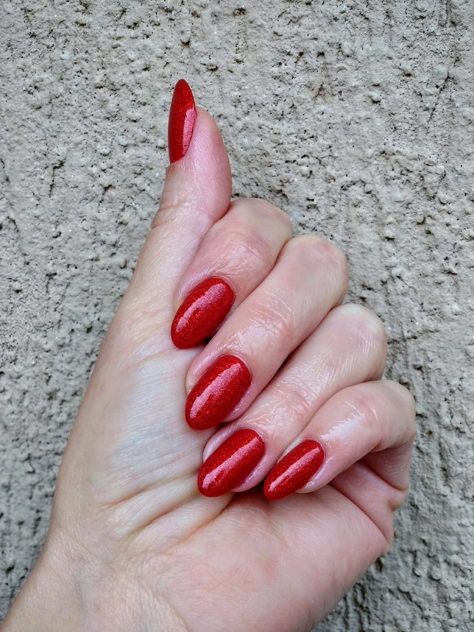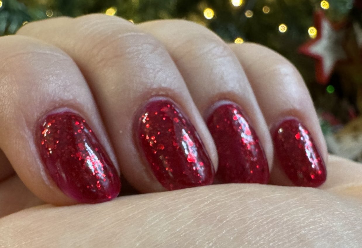 Ако лакът изглежда различен, например от черен се е превърнал в патладжан с холографски шимър след нанасяне, опитайте да нанесете лъскав топ лак, за да възстановите желания ефект. Ако и това не помогне, можете да потърсите алтернативни марки, които предлагат подобни цветове и текстури, но с гладка формула вместо пясъчна.