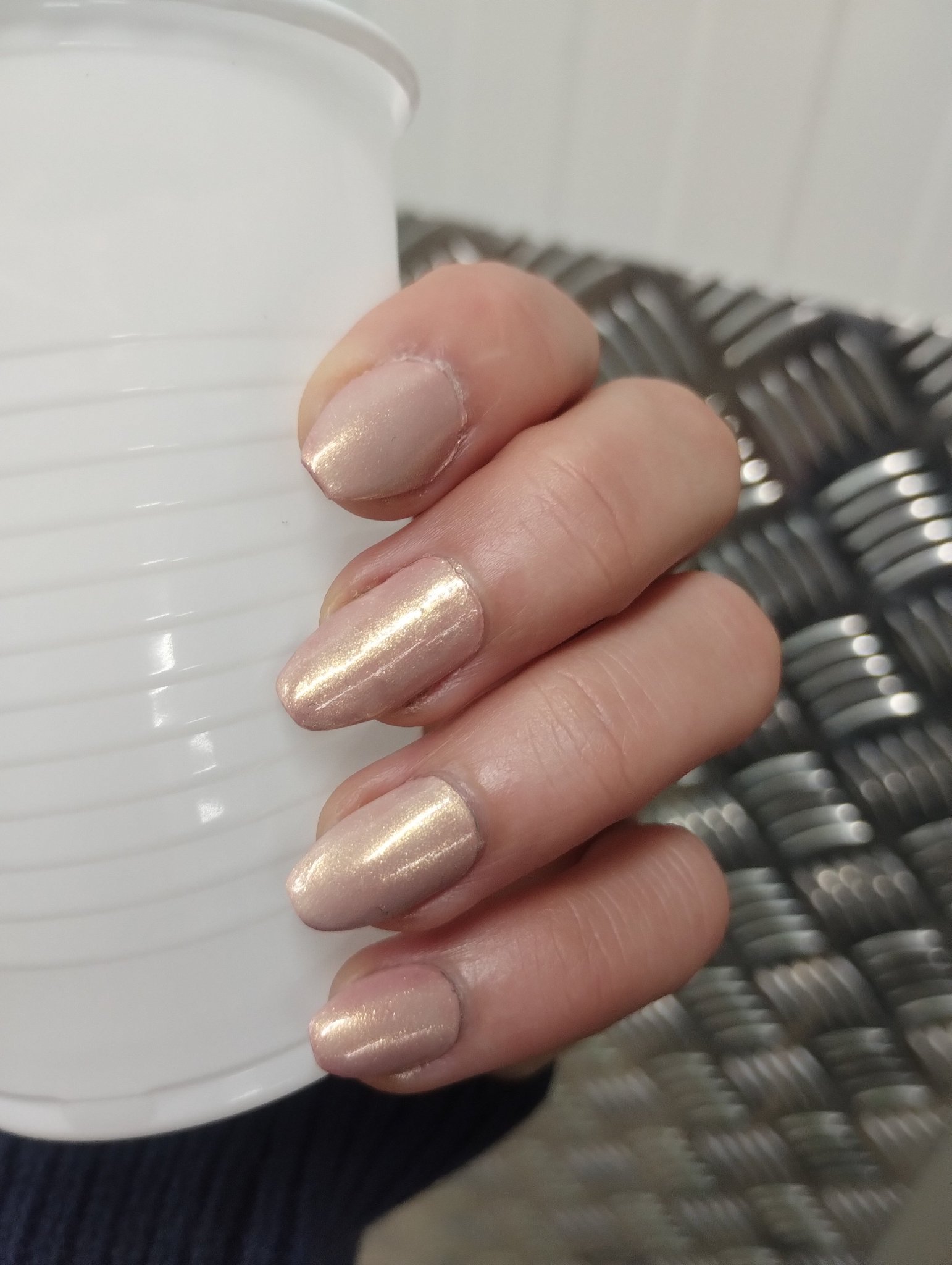 Ако лакът изглежда различен, например от черен се е превърнал в патладжан с холографски шимър след нанасяне, опитайте да нанесете лъскав топ лак, за да възстановите желания ефект. Ако и това не помогне, можете да потърсите алтернативни марки, които предлагат подобни цветове и текстури, но с гладка формула вместо пясъчна.