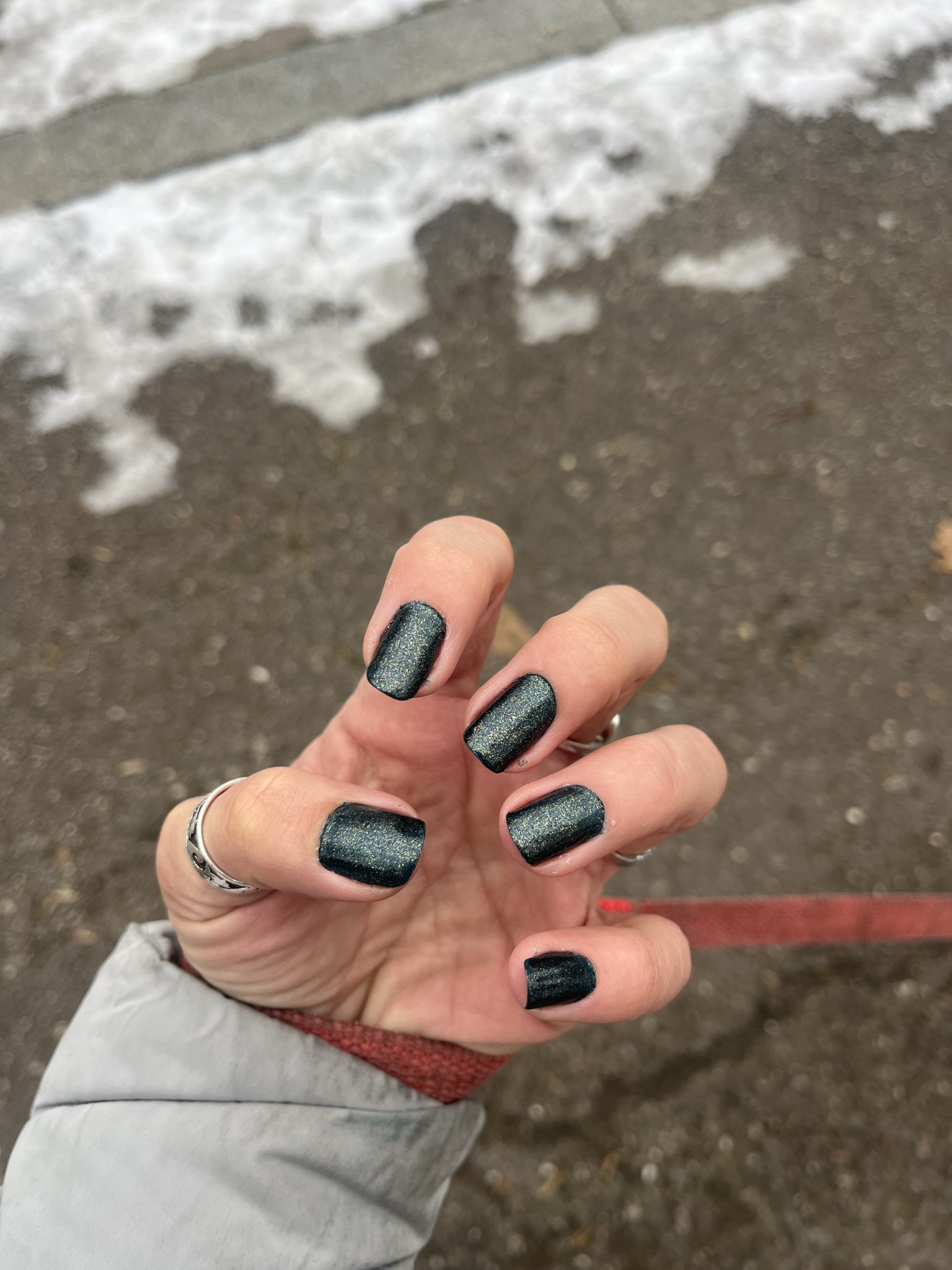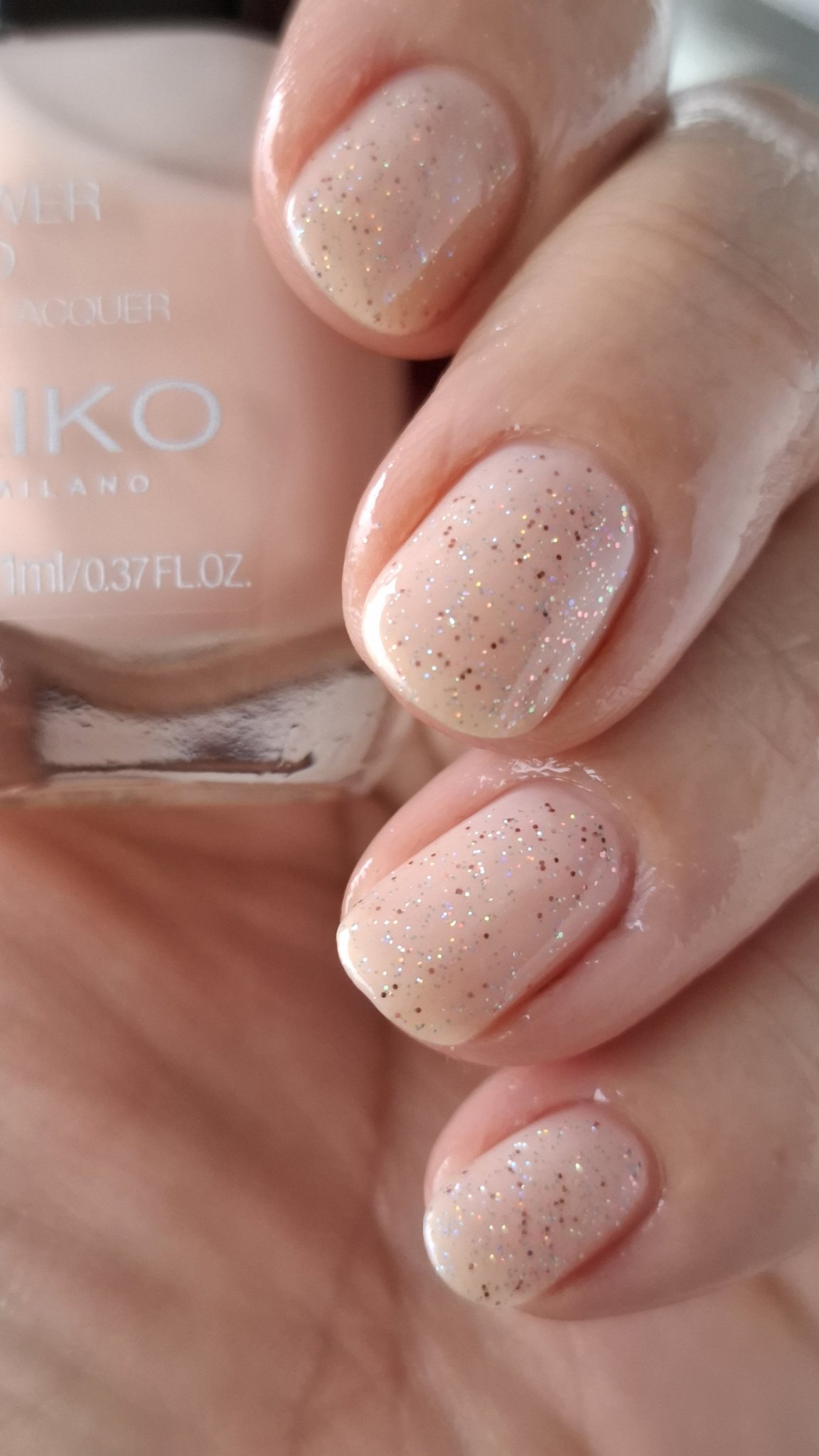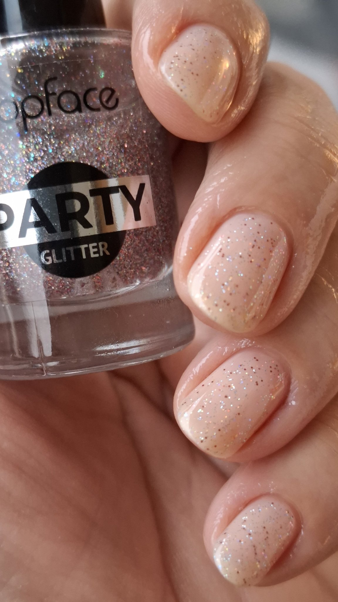 Ако лакът изглежда различен, например от черен се е превърнал в патладжан с холографски шимър след нанасяне, опитайте да нанесете лъскав топ лак, за да възстановите желания ефект. Ако и това не помогне, можете да потърсите алтернативни марки, които предлагат подобни цветове и текстури, но с гладка формула вместо пясъчна.