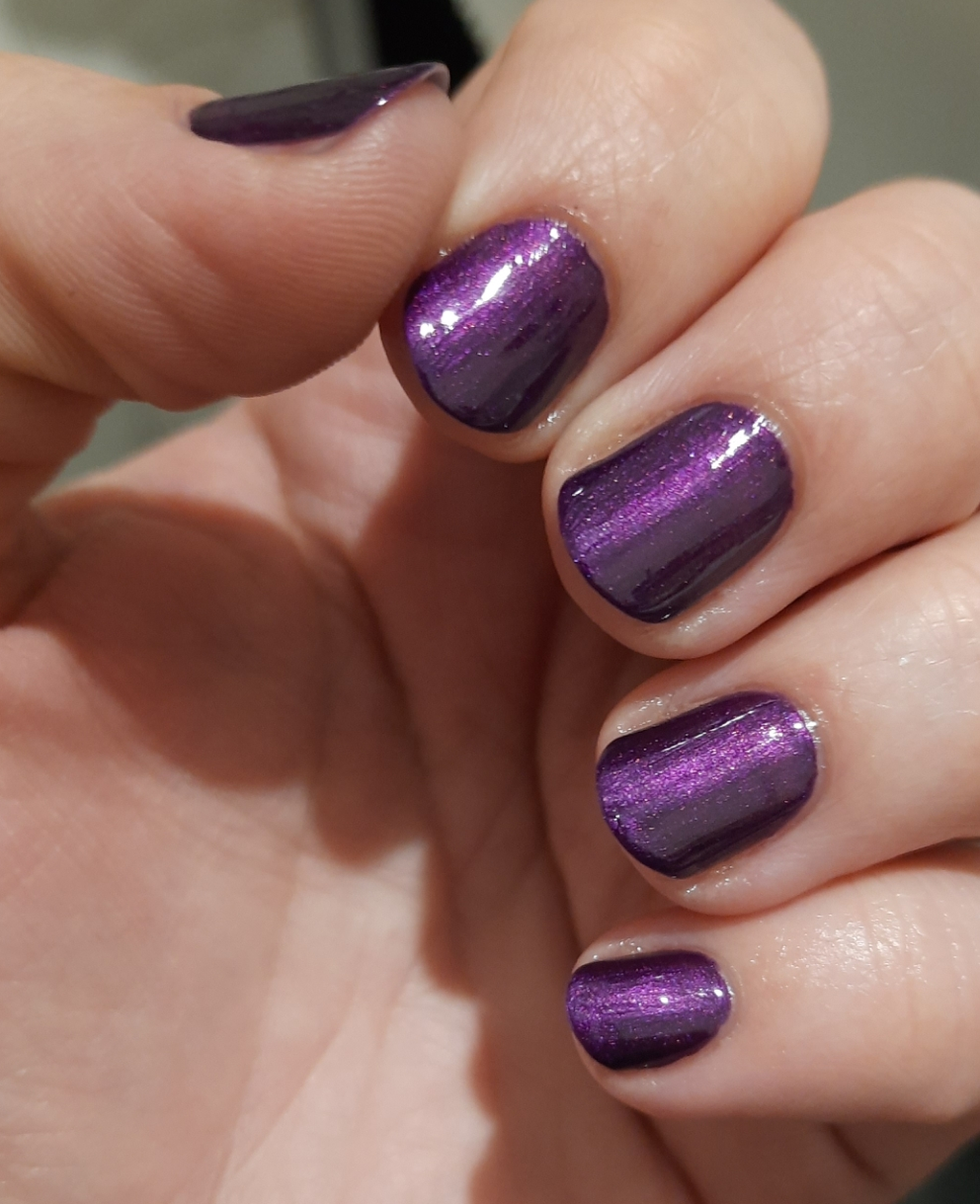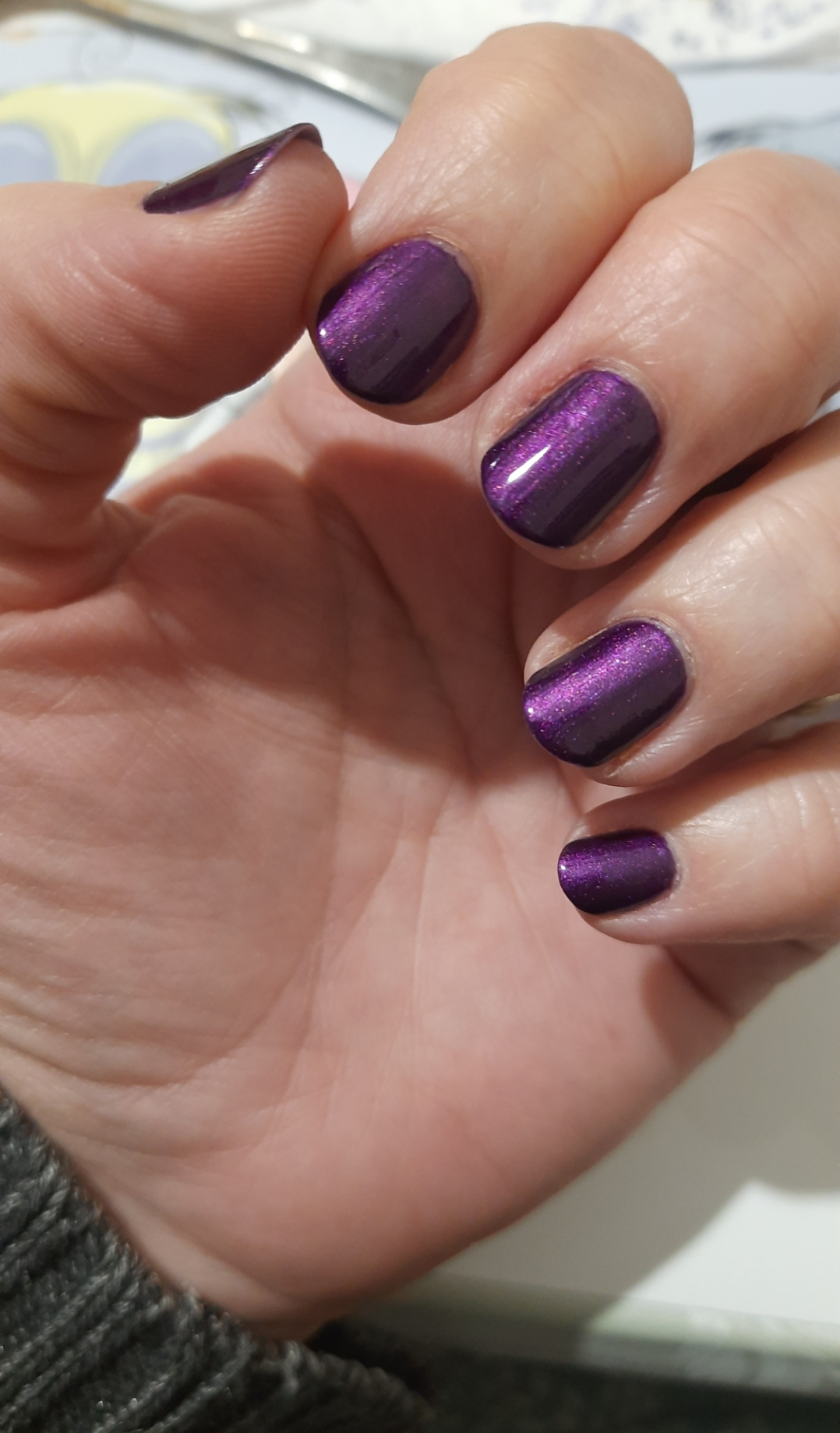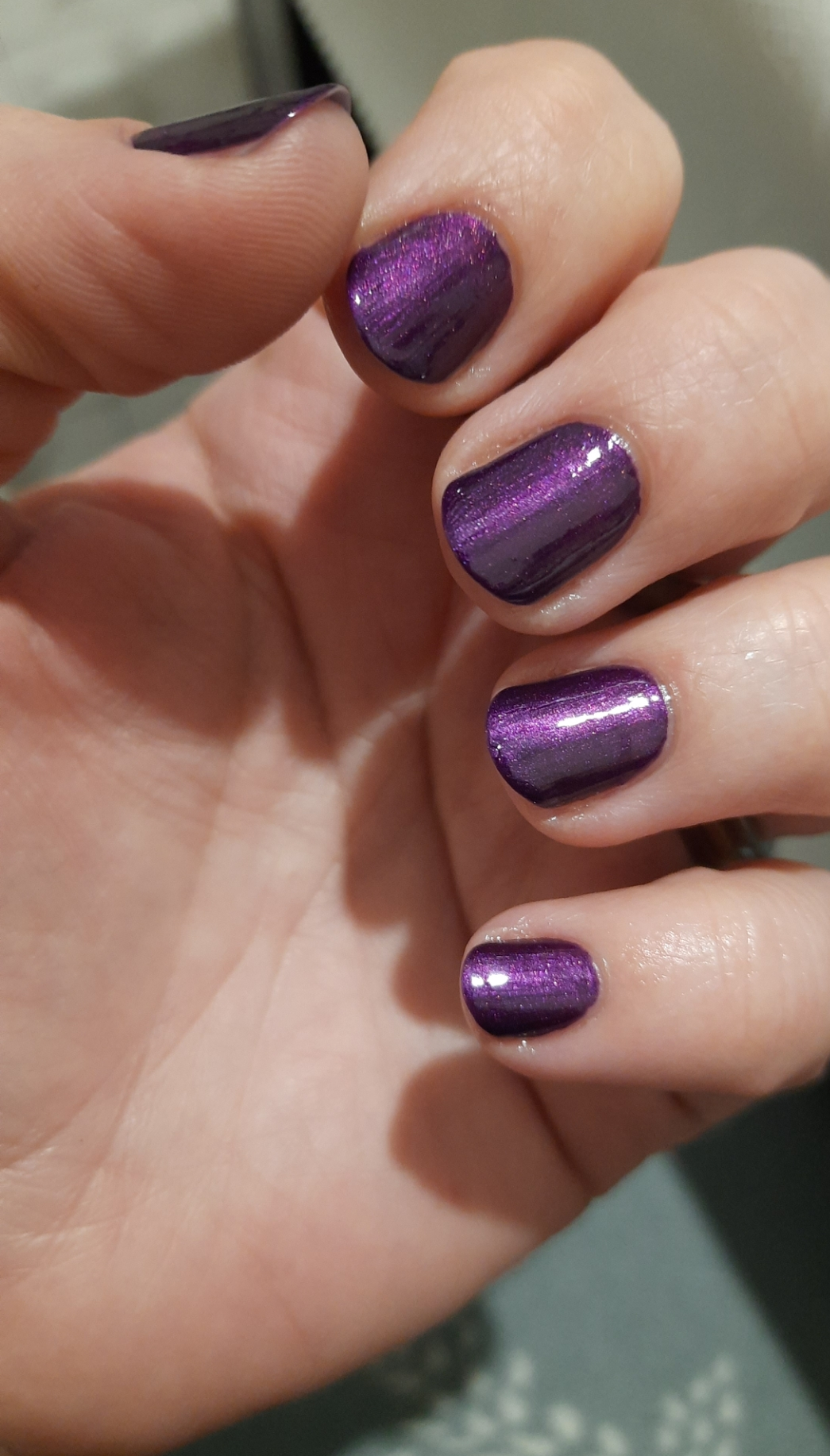 Ако лакът изглежда различен, например от черен се е превърнал в патладжан с холографски шимър след нанасяне, опитайте да нанесете лъскав топ лак, за да възстановите желания ефект. Ако и това не помогне, можете да потърсите алтернативни марки, които предлагат подобни цветове и текстури, но с гладка формула вместо пясъчна.