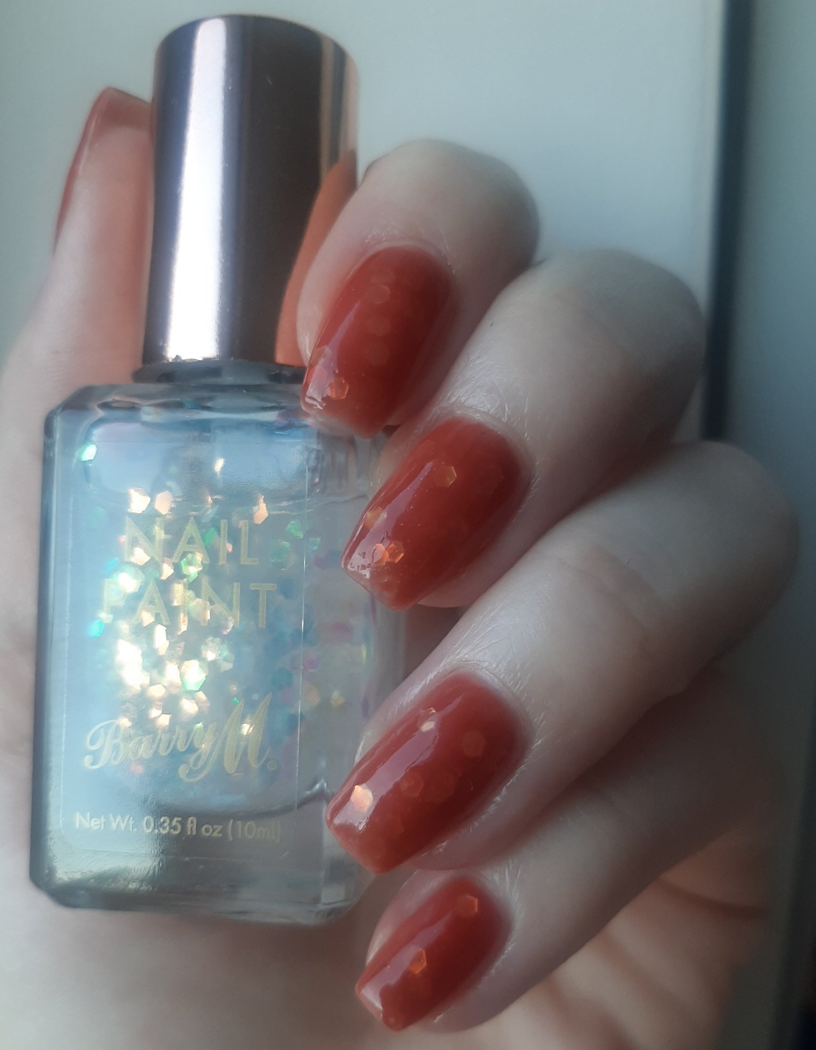 Ако лакът изглежда различен, например от черен се е превърнал в патладжан с холографски шимър след нанасяне, опитайте да нанесете лъскав топ лак, за да възстановите желания ефект. Ако и това не помогне, можете да потърсите алтернативни марки, които предлагат подобни цветове и текстури, но с гладка формула вместо пясъчна.