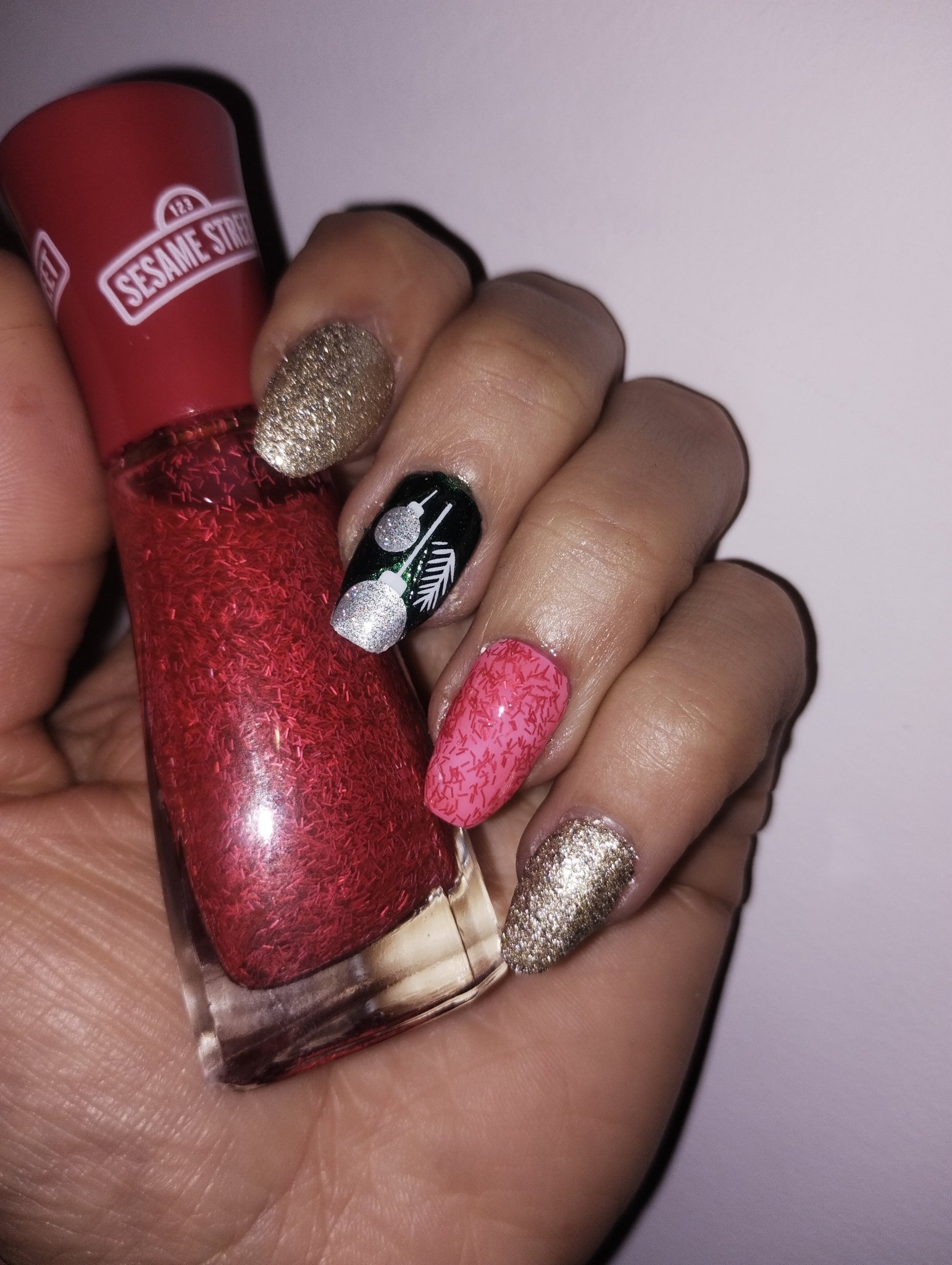 Catrice 158 deeply in green, trend it up I love effect 030, Sally Hansen insta-dri 130 Elmo loves Hue + стикери
