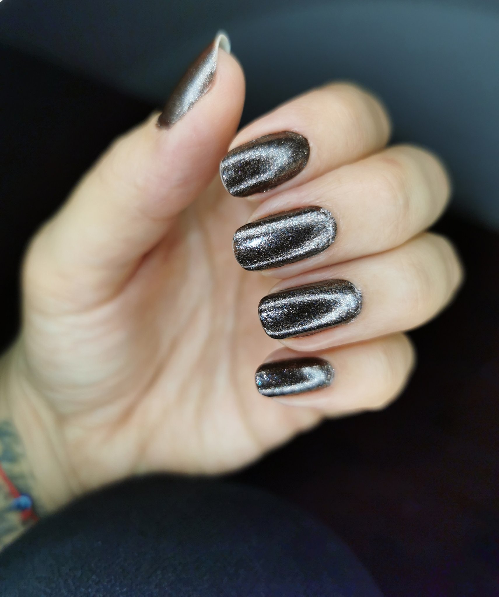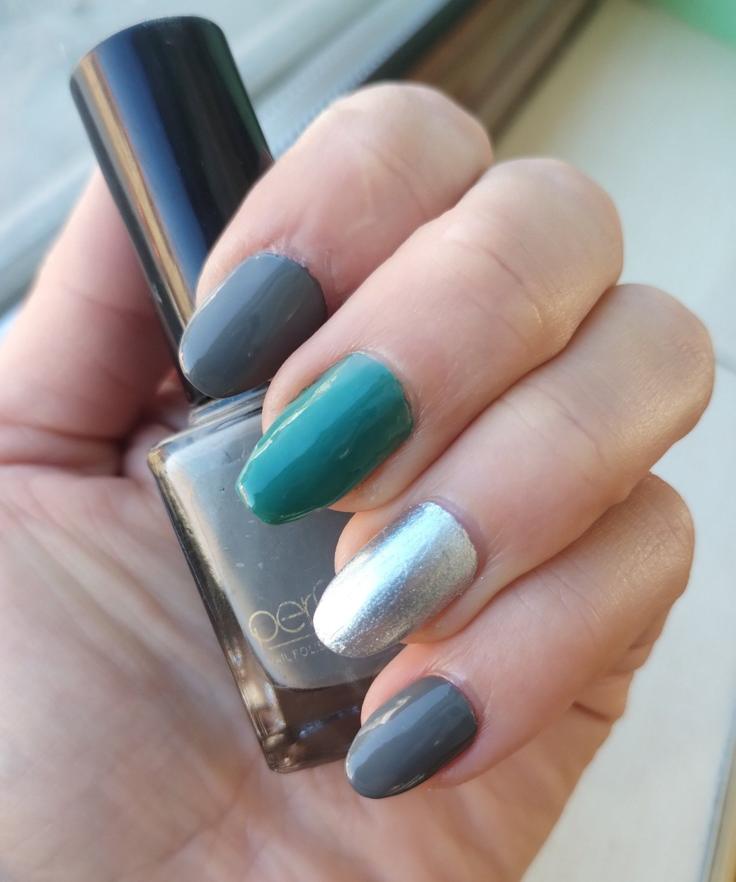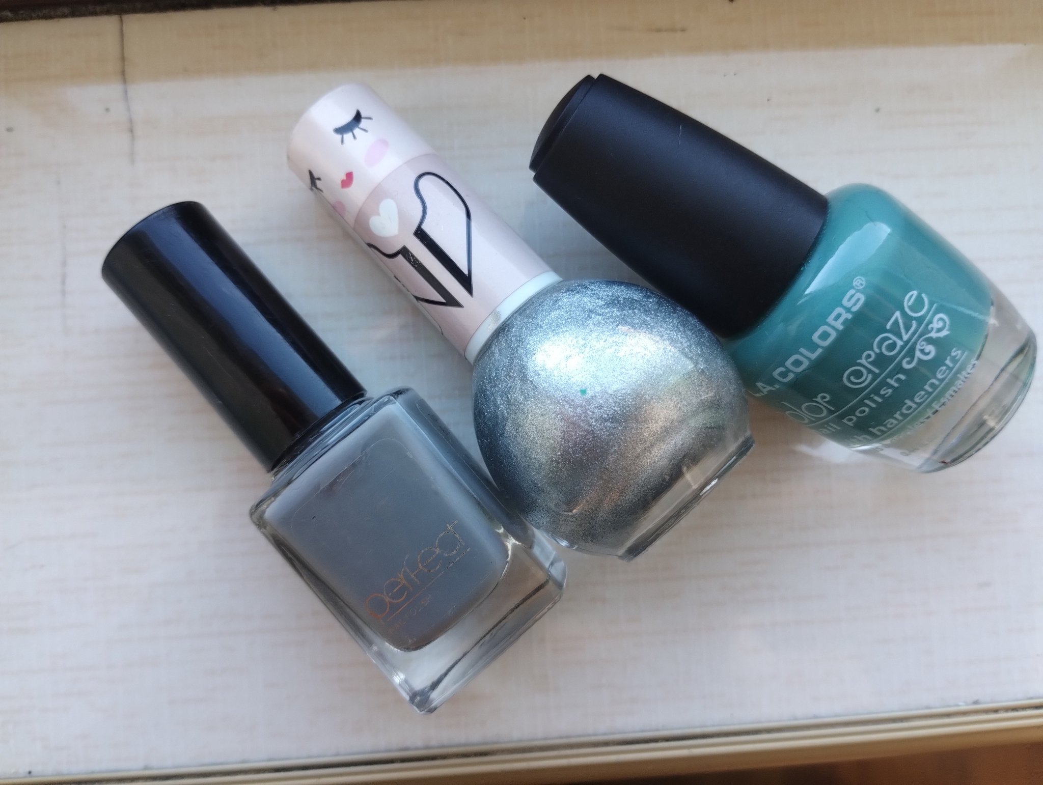 С малкия сме на гости при родителите ми. Разбира се и тук имам запаси от лакове и сътворих този мрачен маникюр. Лаковете са perfect (няма номер), L.A. colors np420 atomic и китайче