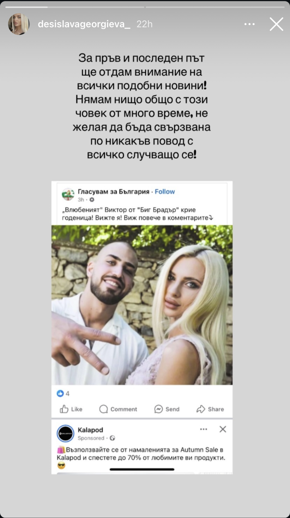 Да съгласна съм. Този Велин излиза пред цяла България да говори с Виктор да не се закача с приятелката му,а всички виждаме Теодора как се държи с Виктор. И на всички е ясно ,че и тя се захласва по него . Моят мъж ако се държи така вътре с някоя ,направо го оставям няма да се показвам по телевизията да се излагам..