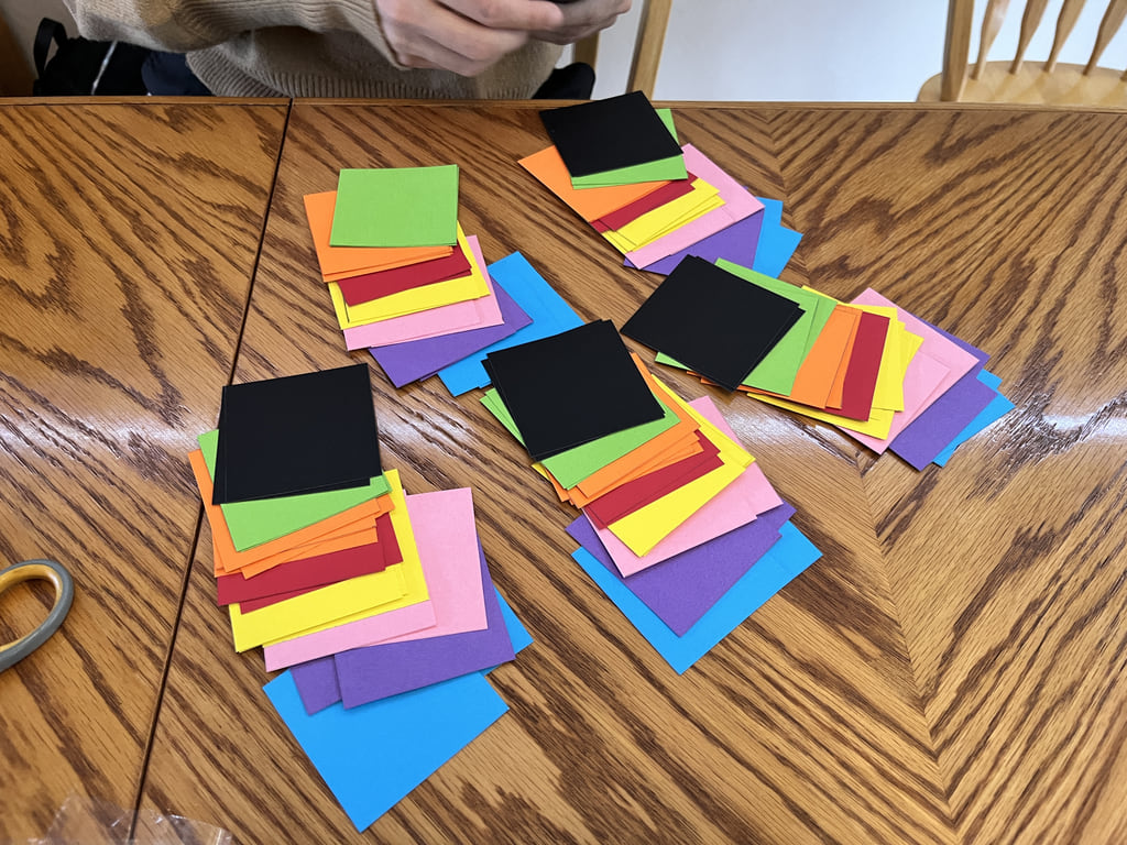 Тази неделя по мое предложение решихме да пробваме играта с помнене на цветове. Купихме цветен картон, изрязахме квадратчета и започнахме 6 човека. Няма нужда от специална установка за пускане на плочки, просто всеки има по едно картонче от всеки цвят, което държи в ръце под масата, когато "водещият" пита - поглеждаш избираш коя и когато каже, всички вадят едновременно с вдигната ръка.  Установихме, че хора които могат бързо да измислят и запомнят истории имат голям успех. Само след няколко игри имахме 3 човека които стигнаха до 10 плочки без грешка.
