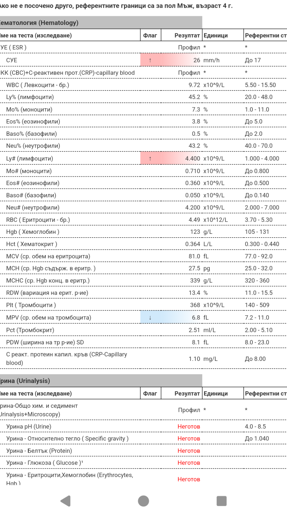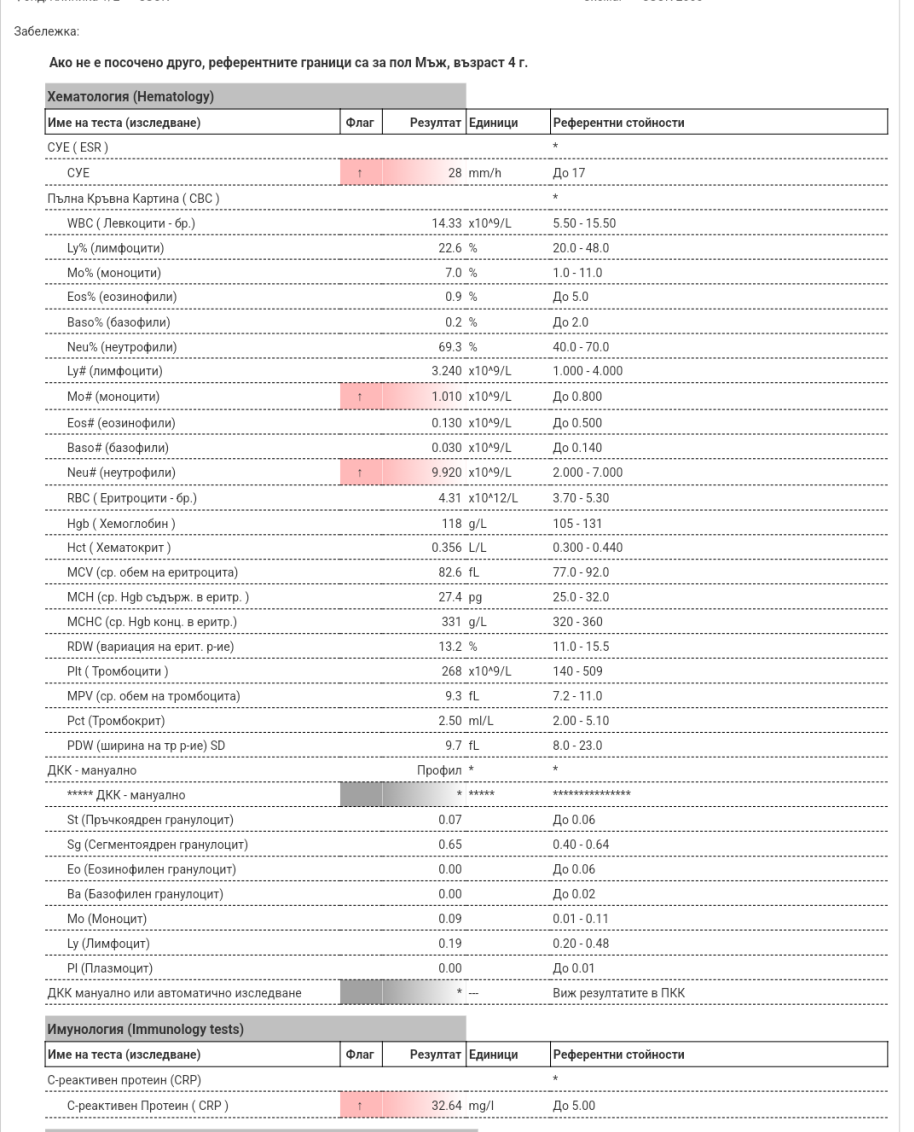 Въз основата на тези резултати детето има ли възпаление или няма .