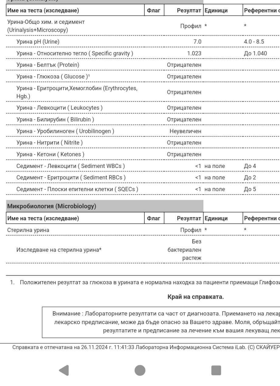 Аз нещо се обърках с тези изследвания кое от кога е. Ако е излезнала стерилната и обикновената урина от днес, бих подложила под голямо съмнение резултата. Обикновена -ок, ама стерилна да излезе за 2 часа, не ми се е случвало.