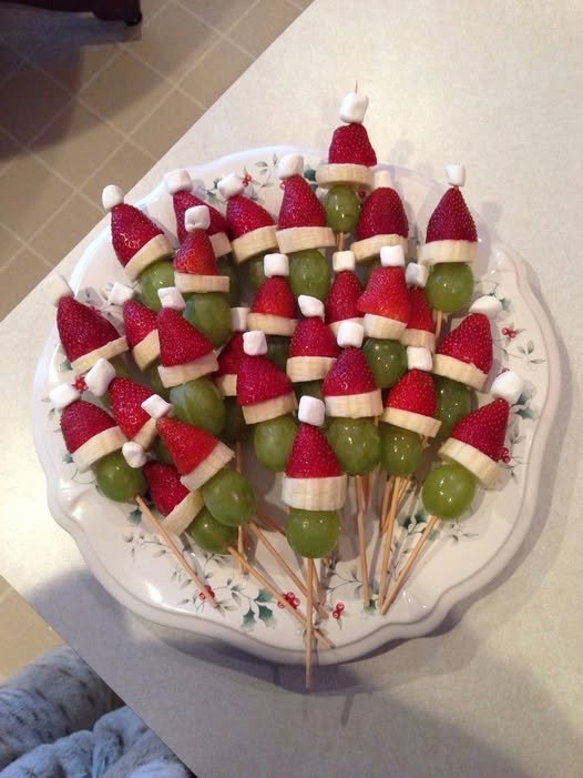 От името на почитателките на сапунки, еднорози и др. чудеса - не намерих нищо петъчно тези дни и реших да Ви изненадам с една празнична идея. (Защото така и не намерих къде се продава куклата с GonG Yoo в костюм на Санта). Много е проста- грозде, банан и ягода- за връхче маршмелоу.