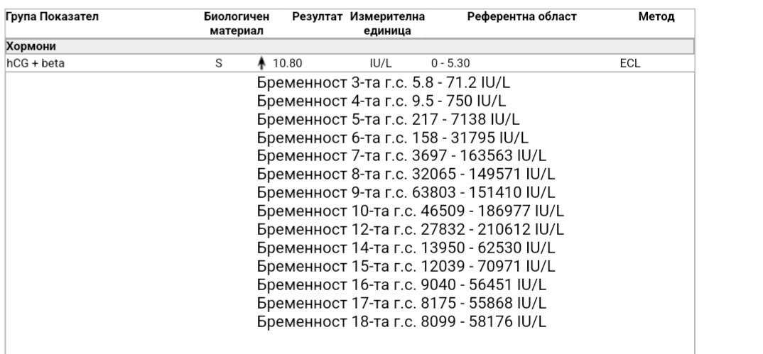 След бледата черта в неделя, в понеделник имах тест с по-плътна и наситена черта (7ми ден след ЗЕТ). И днес на 9ти ден резултат 15.22, което за мен означава, че стойността пода. От клиниката искат да продължа с терапията и да пусна нов тест в петък….