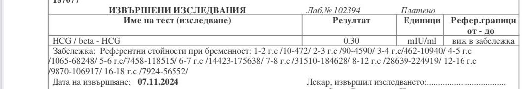 Ето го и моя резултат, трансфер на 31.10 на 5дневен ембрион минал ПИД. Мисля, че е безнадеждно, има ли смисъл да продължавам с лекарствата?