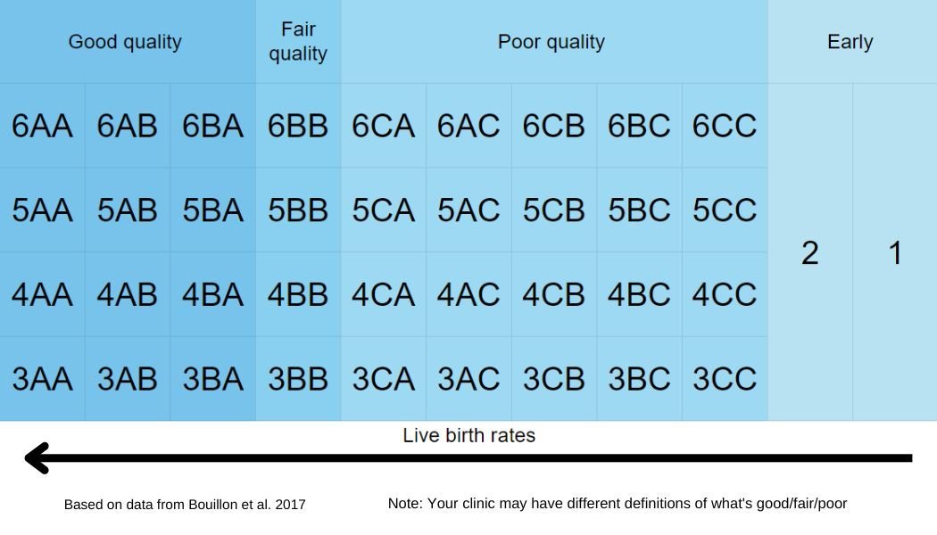 Henriette, тази таблица, която циркулира онлайн особено в българските групи е изключително некоректна! Според нея всички ембриони с оценка C трябва да отпадат автоматично, а що живо родени деца има с подобни оценки.