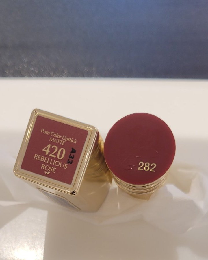 Вчера в Дъглас погледнах няколко червила и ми харесаха тези двете от снимката. Ести Лаудер мат подчертава резките по устните,  а Ланком е добре. В онлайн магазина в момента има намаление и решавам да го пусна като поръчка, но го няма този номер 282. Нещо да знаете? Да не го спират?