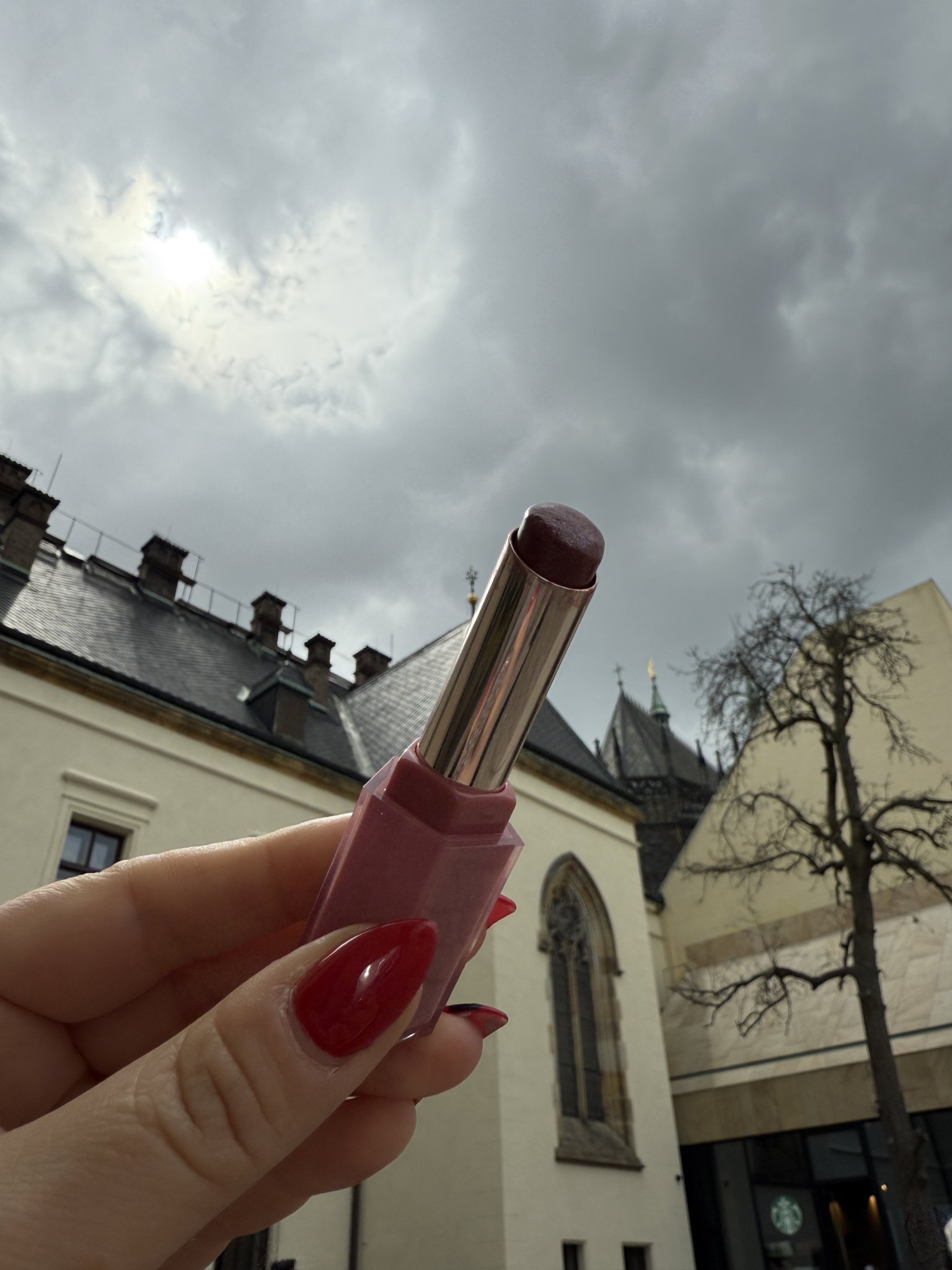Ето и моето  директно на фона на замъка в Прага, където съм сега. Вижте колко малко остава, купено е преди месец и малко. Навътре има още, но трябва с четка.