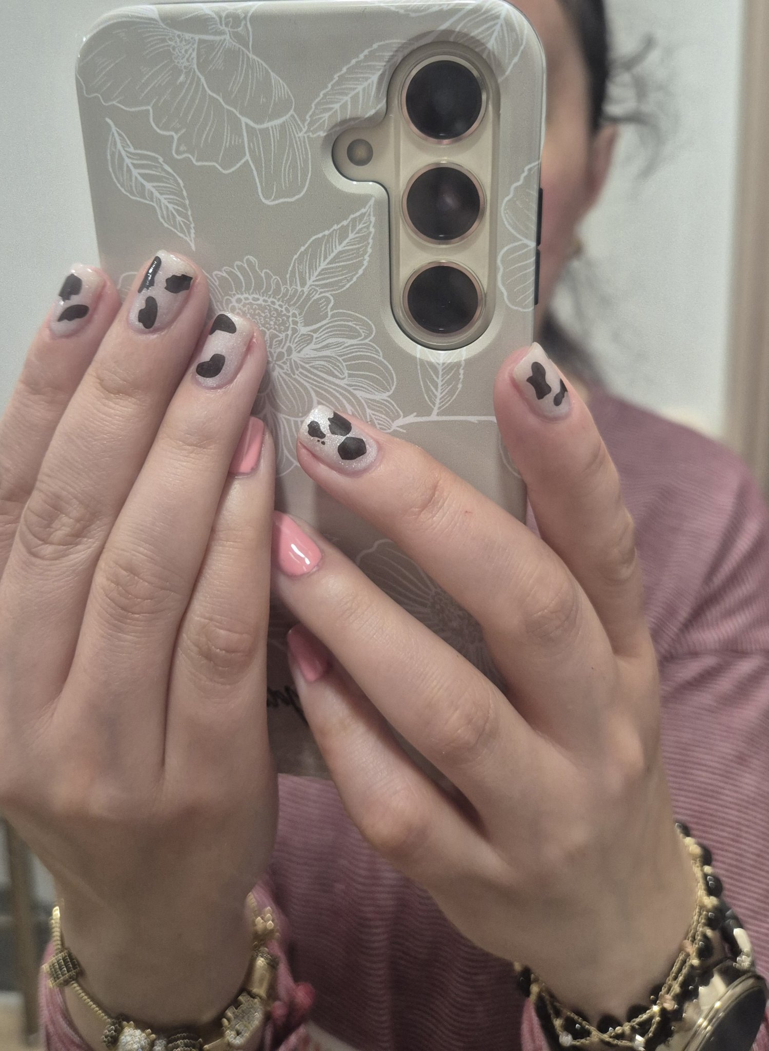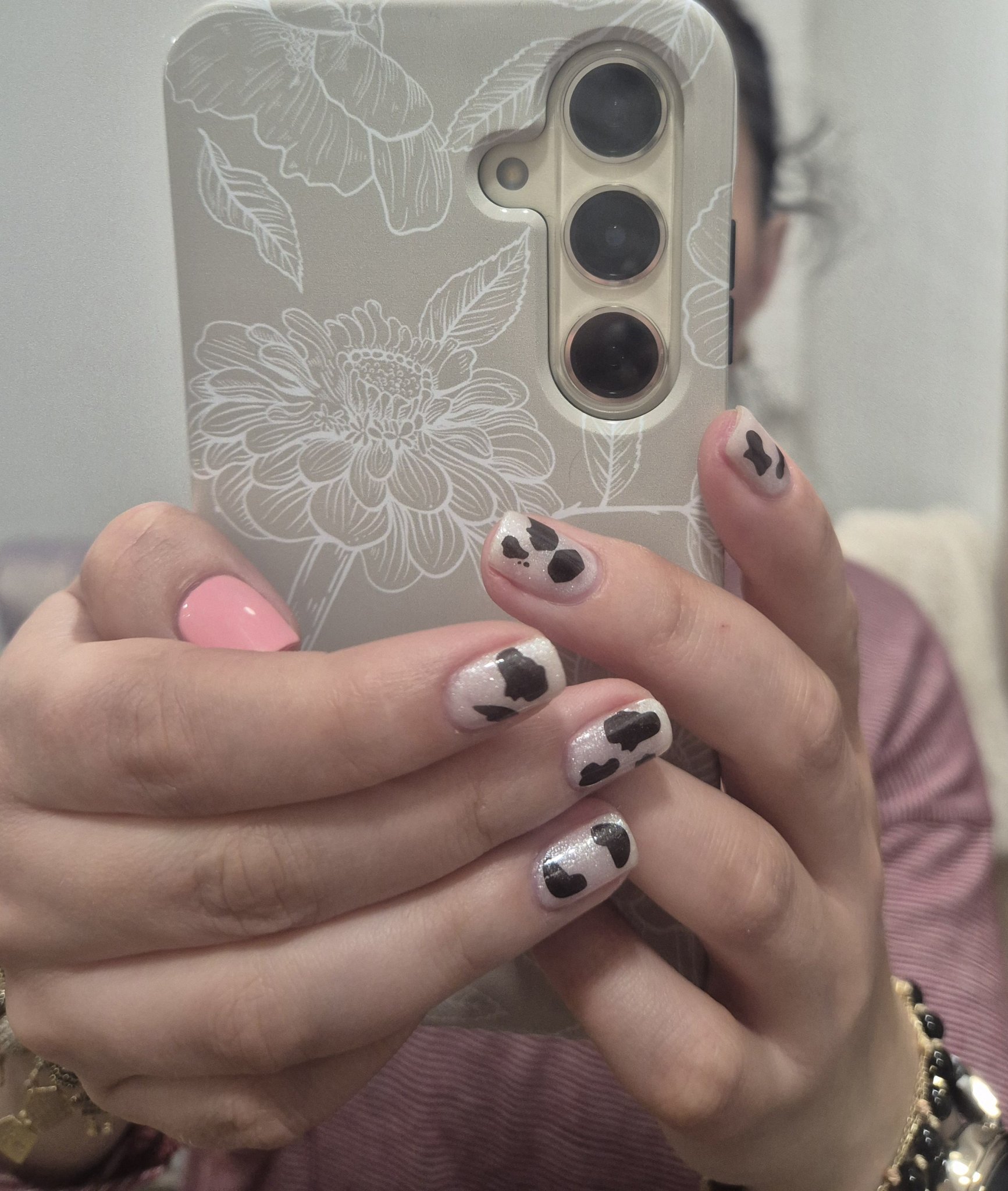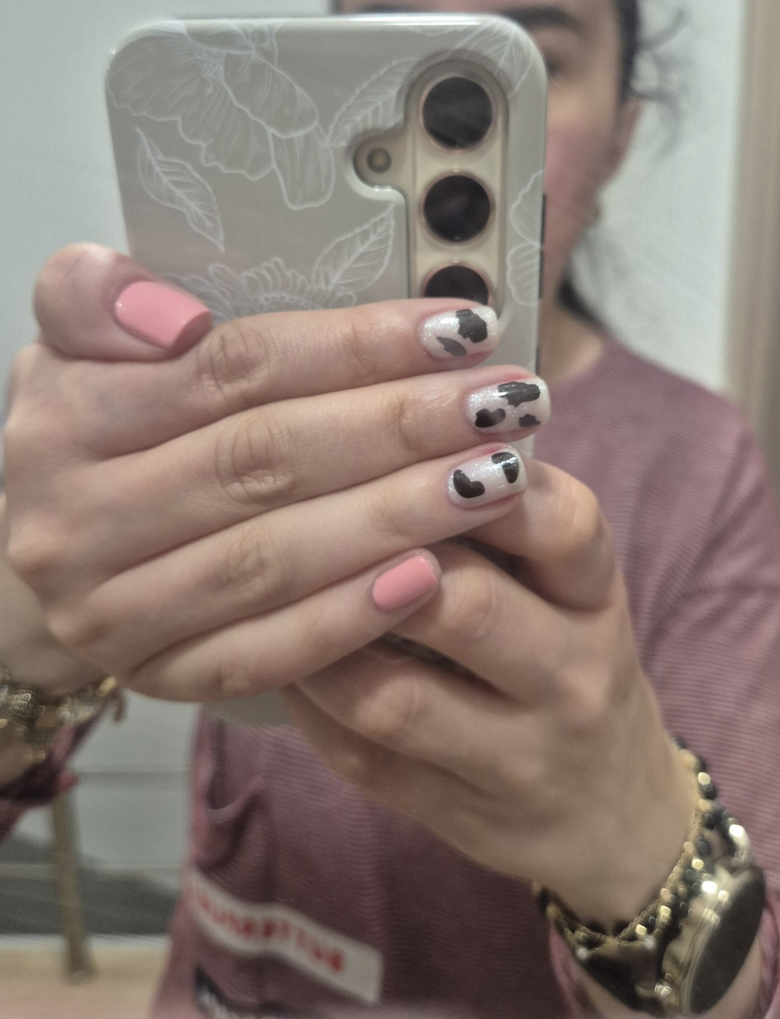 Розовото обаче тук излиза мнооого светло,а е хубаво бонбонено розово,макар че е от отдавна и видях зор с него.Другото е блестящо,тоест бяло с частички и cow стикери Grinning