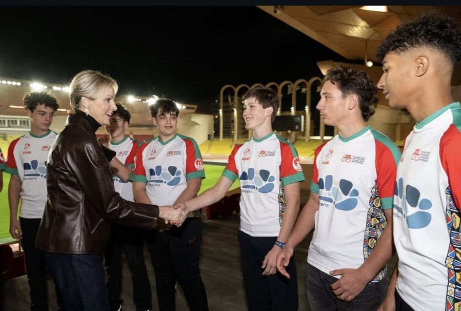 На стадион Stade Louis |I Шарлийн като президент на Монакската федерация по ръгби, имаше удоволствието официално да представи фланелките на отбора по ръгби на Княжеството до 16 години за участието им в престижния турнир Dubai7s.