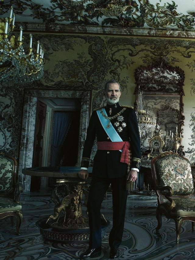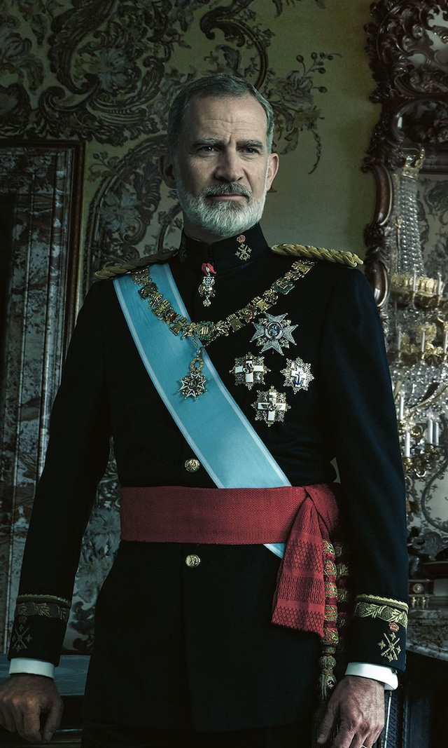 И Фелипе е представен в цялата си кралска прелест, то ордени, униформи, ленти, ала-бала.