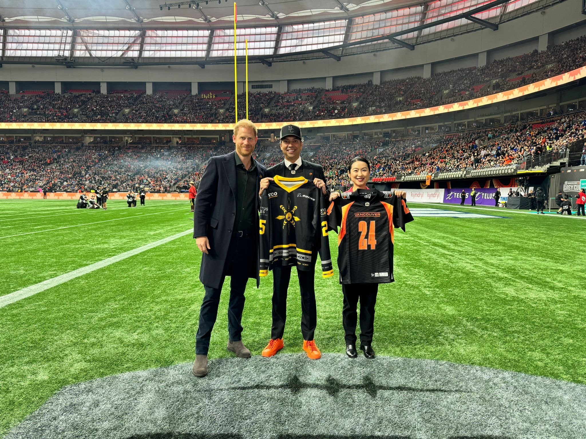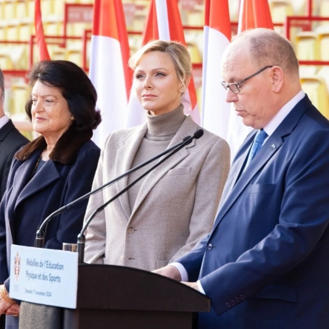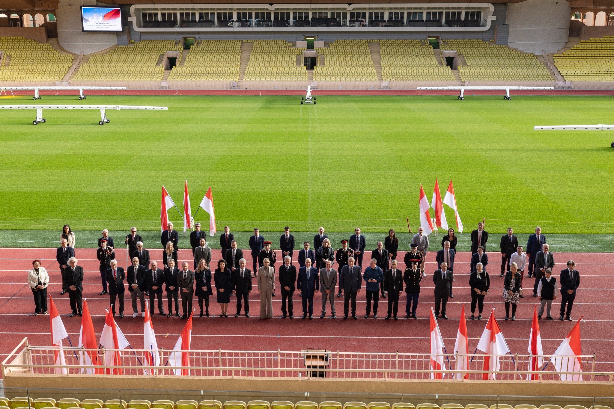 Алберт и Шарлийн връчват медалите за физическо възпитание и спорт на 50-те носители, присъстващи на Stade Louis-ll.