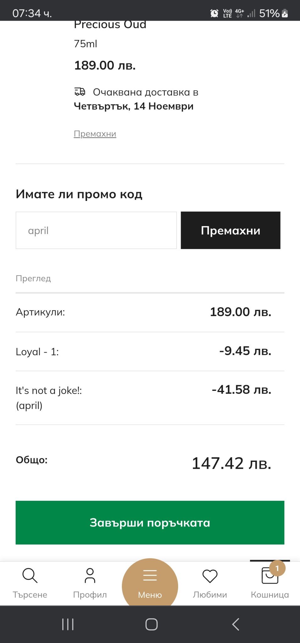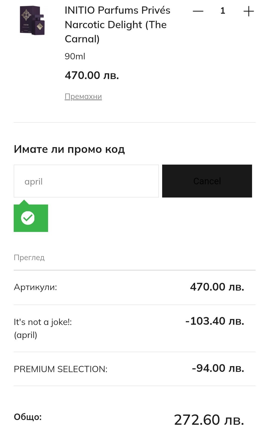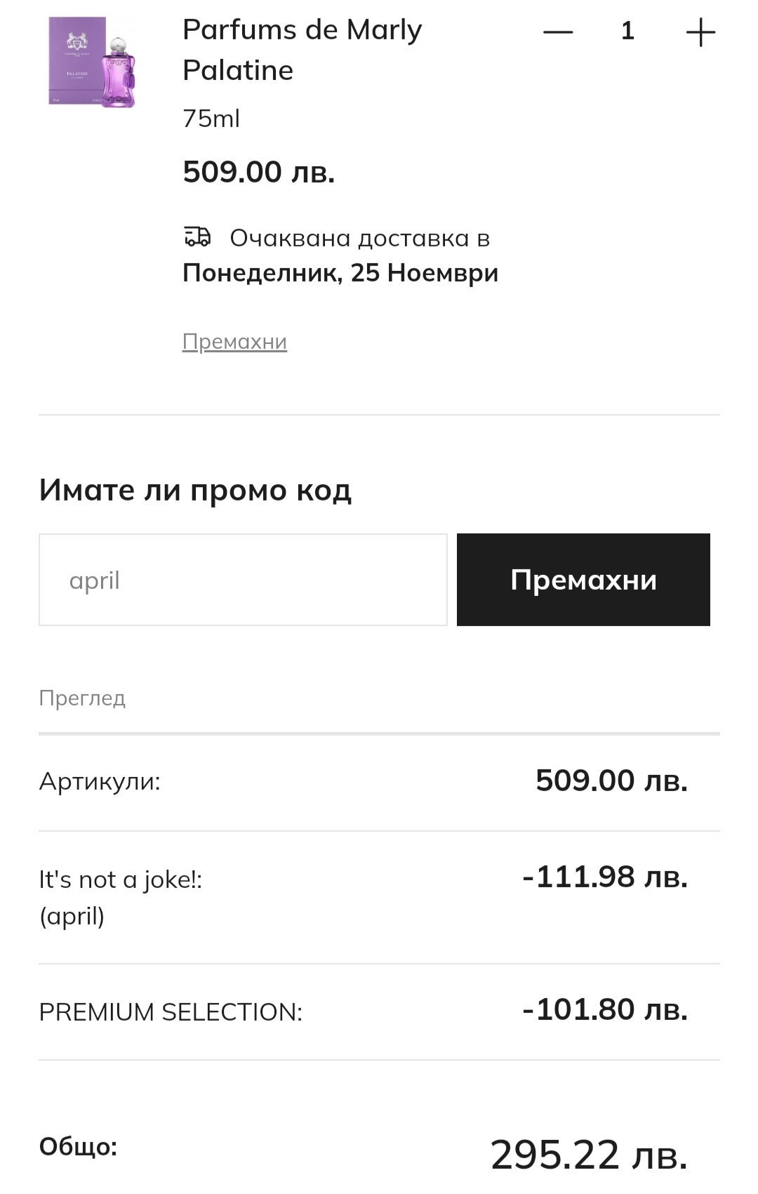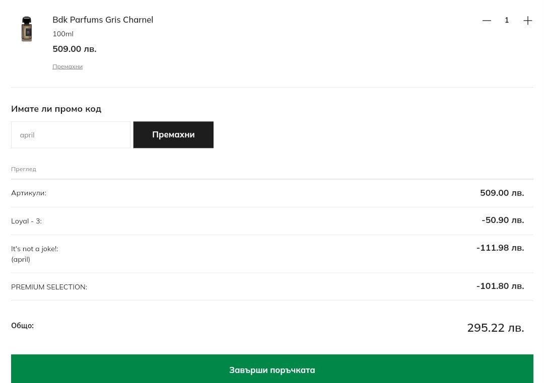 Аз не поръчах нищо, но цените бяха брутални- разцъках страшно много парфюми и на всички имаше 40%