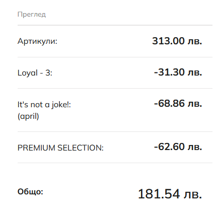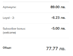 Лоялната програма не се комбинира с промо кодовете. Приспада се по-голямата сума.