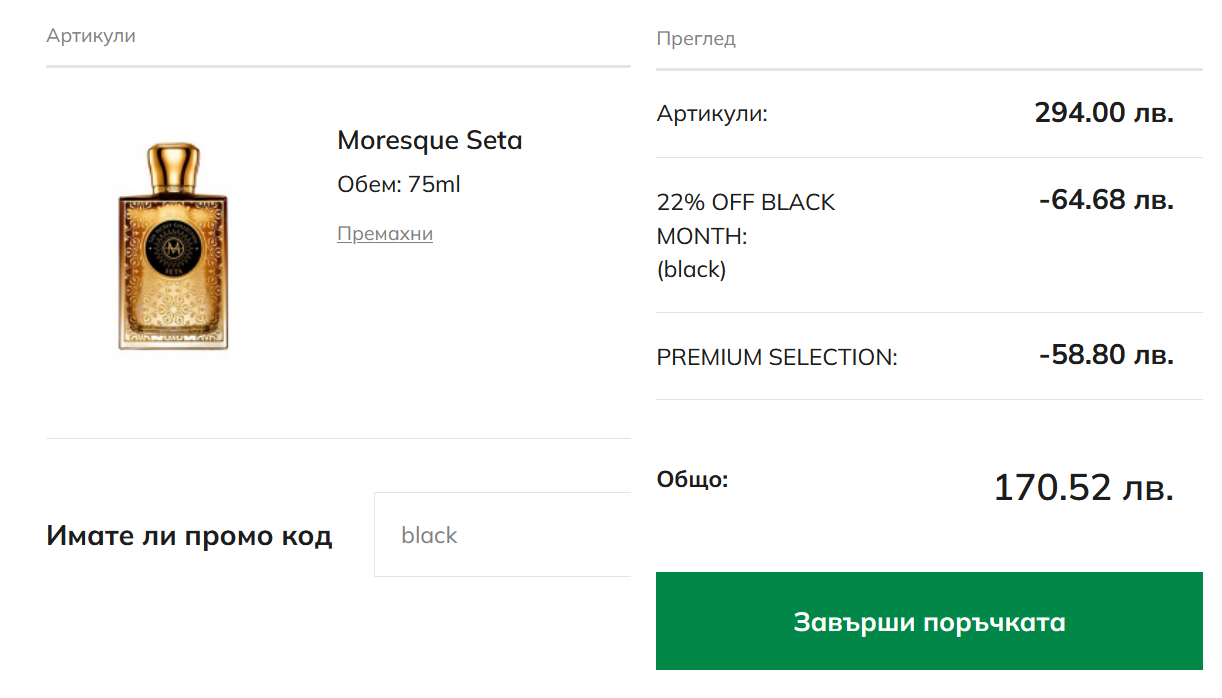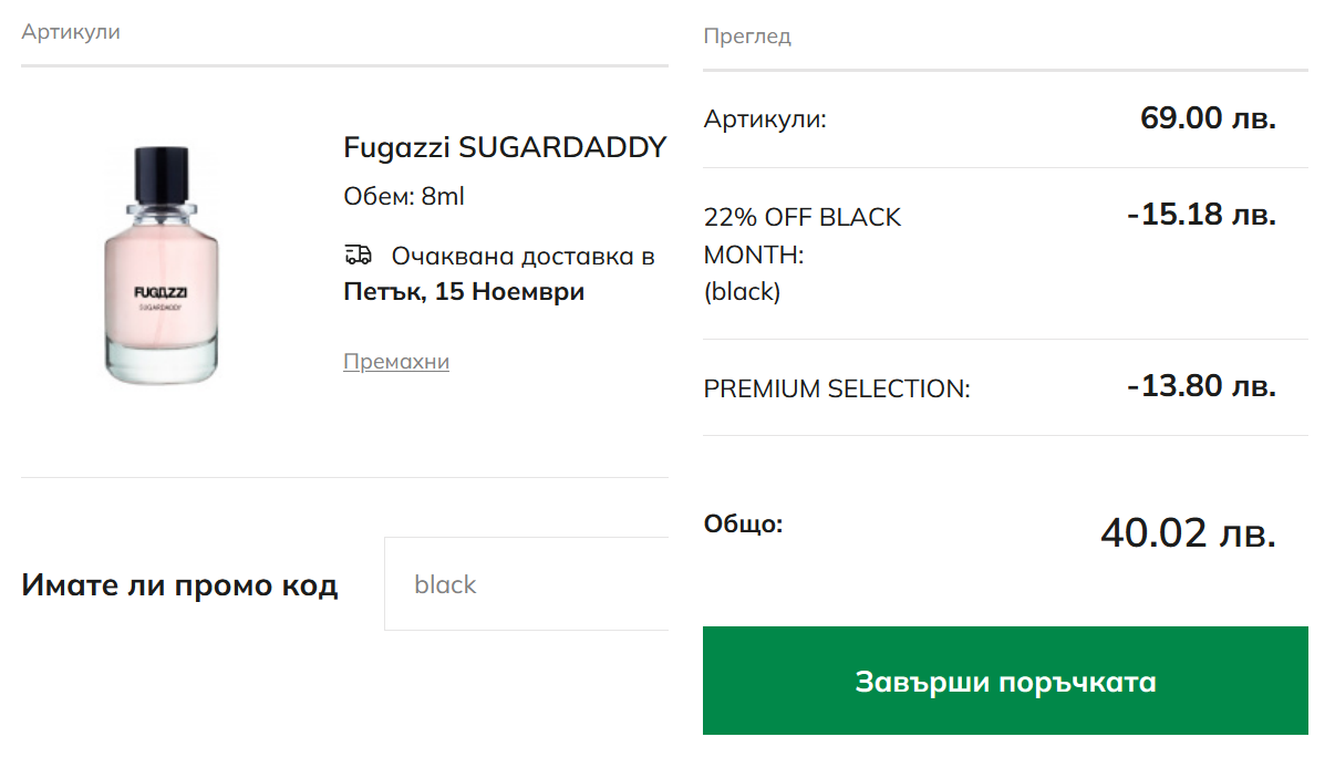 След това проверих и 50 мл. и него го намали, на 75,60 лв.