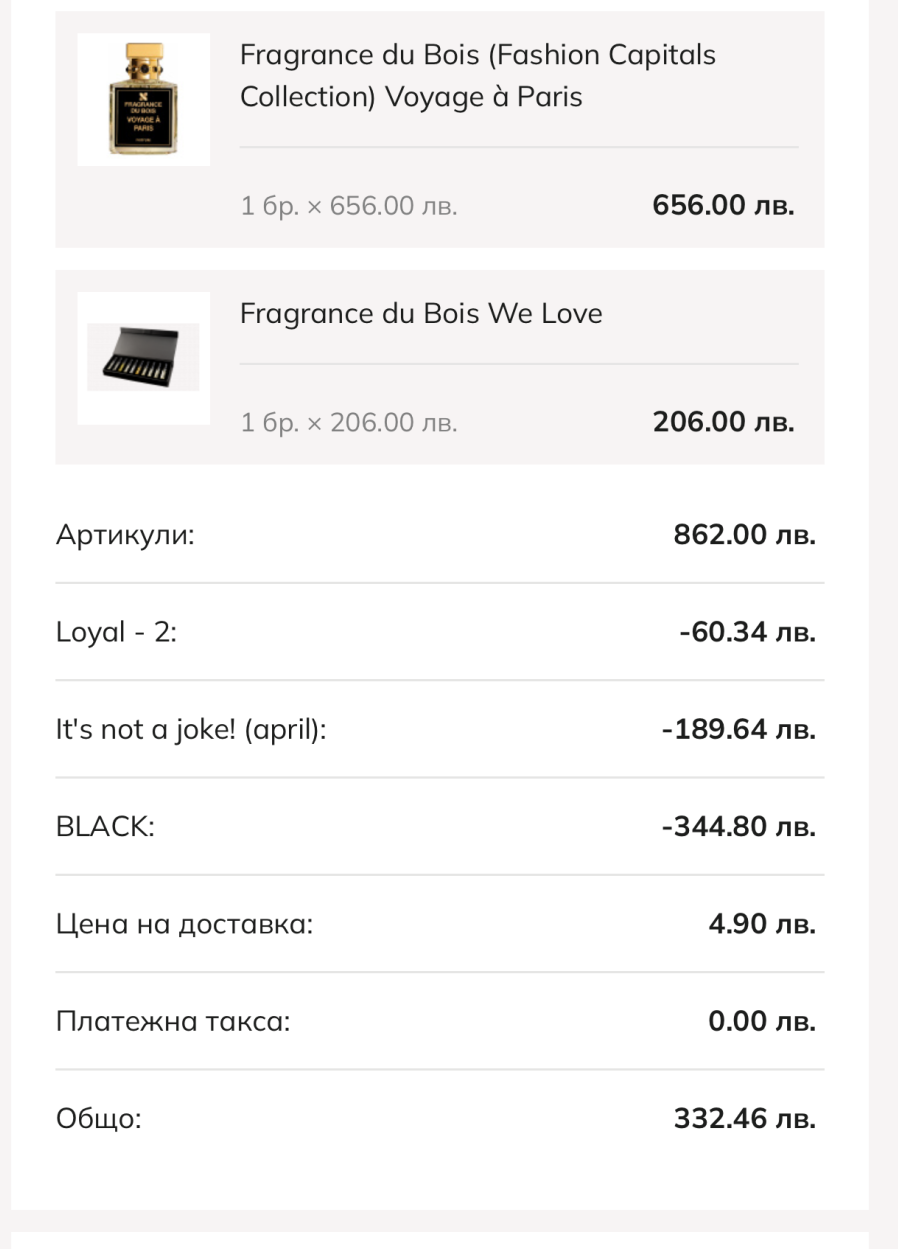 Не забравяйте че има марки за които кодовете не работят. Crivelli е една от тях. Също така за дизайнерските парфюми 2 кода не хващат. Поне аз това видях. Byredo също само 1 код го лови.