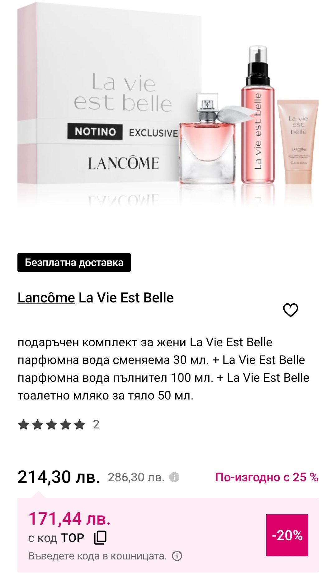 Комплекта съдържа: парфюм 75 мл + 15 мл + душ гел 40 мл