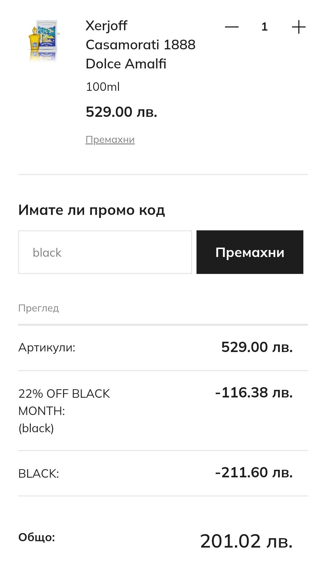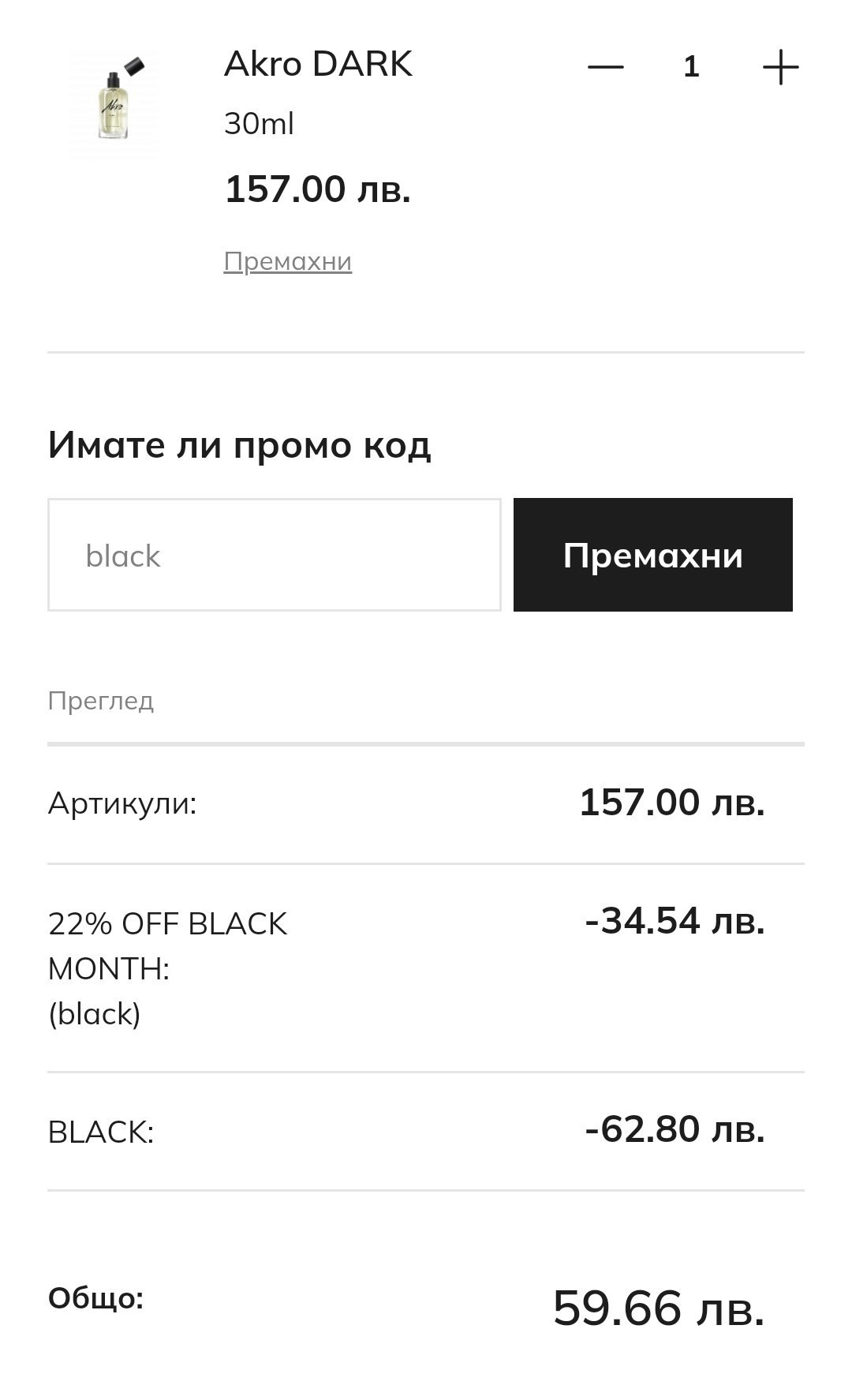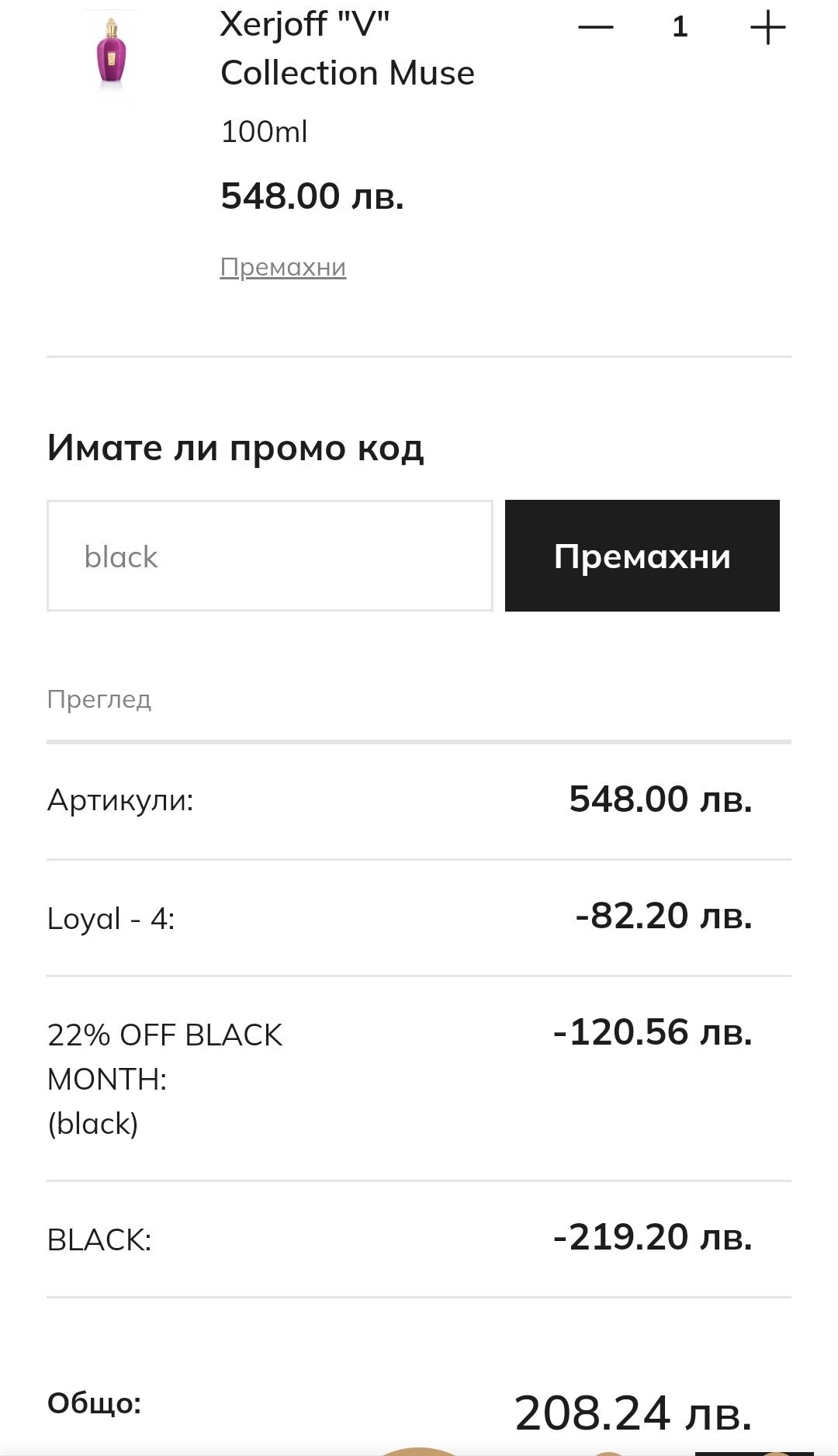 Един код се прилага автоматично в момента и после като се въведе допълнително код black се намалява още (вижда се на скриншота)