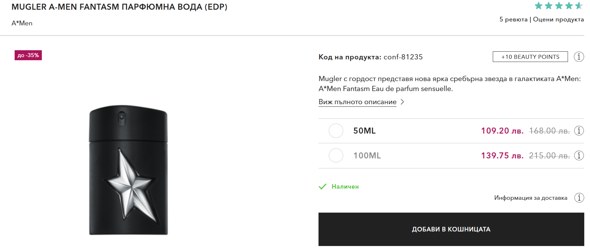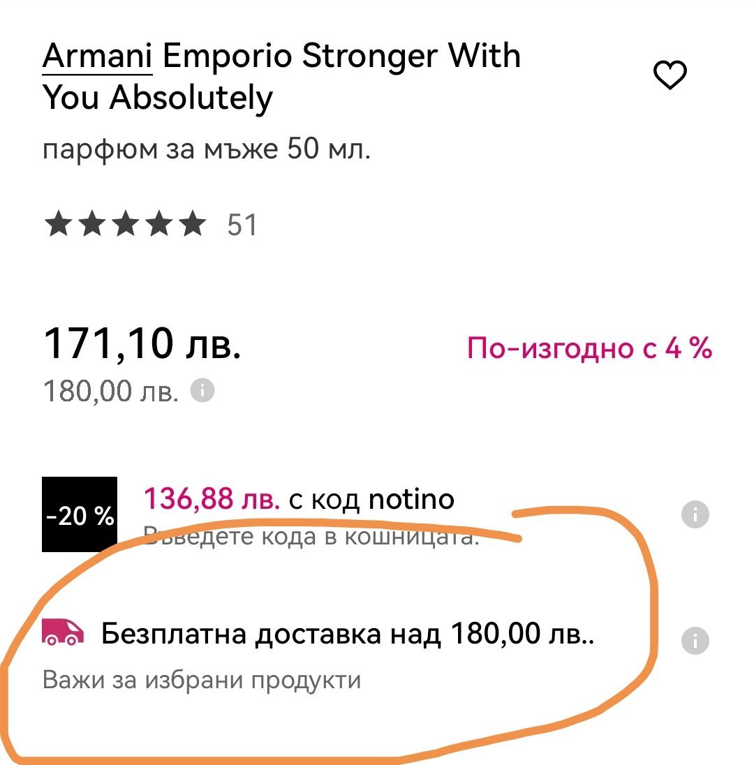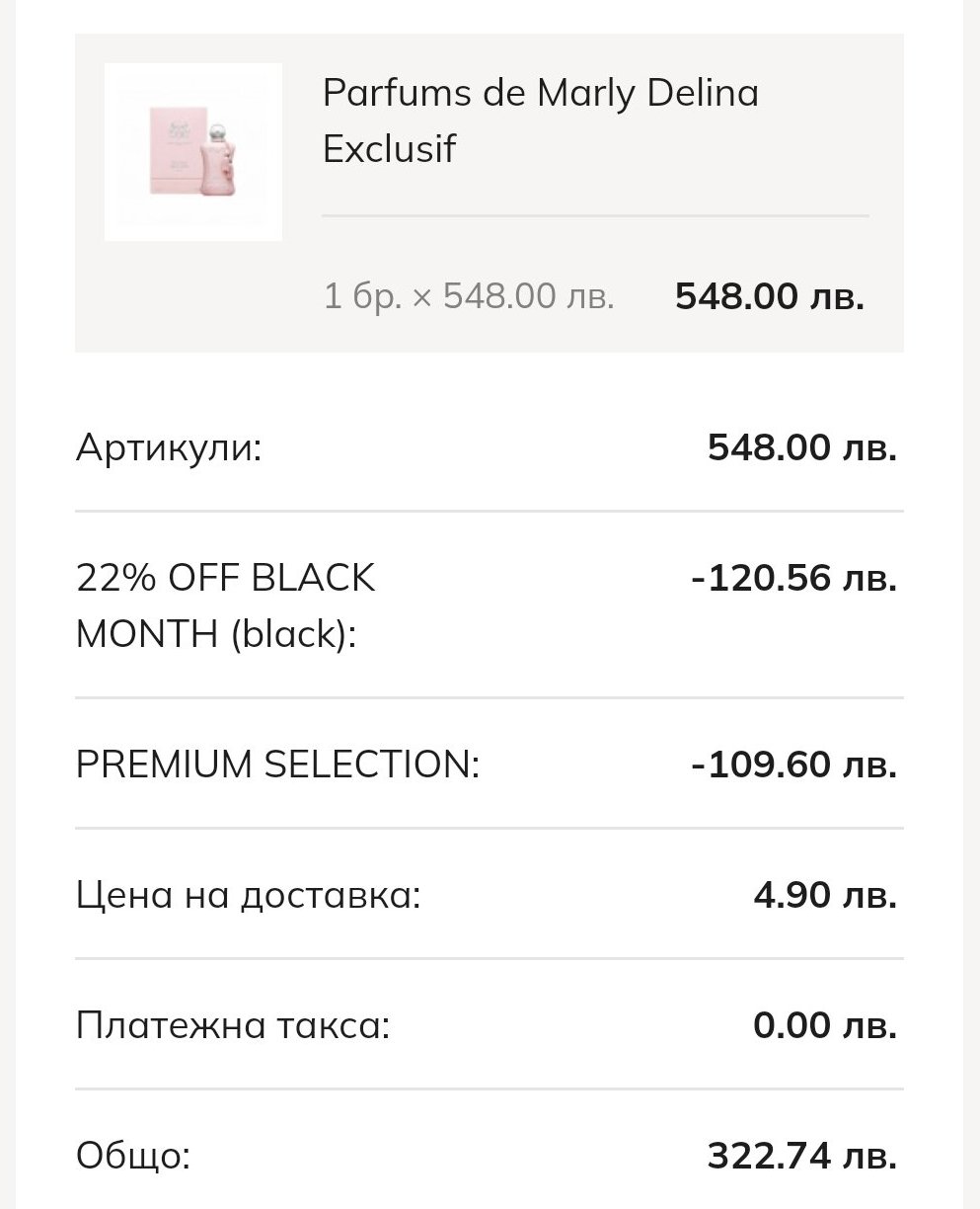 Благодаря. Същият парфюм поръчах, но Intensely. Чаках намаленията във Внета, но по-намалено от нотино за 100 ми, едва ли...