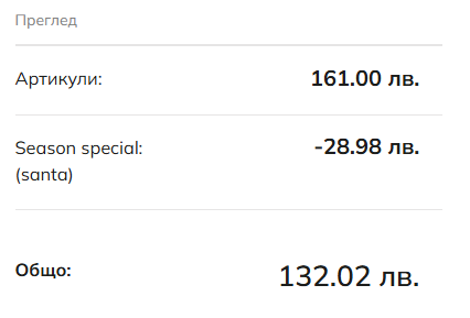 Отстъпката на Мейкъп за РД е 5лв за поръчка над 19лв и 10лв за поръчка над 59лв. И да, начисляват се автоматично в кошницата. Активна е около една седмица преди и една след датата на РД.