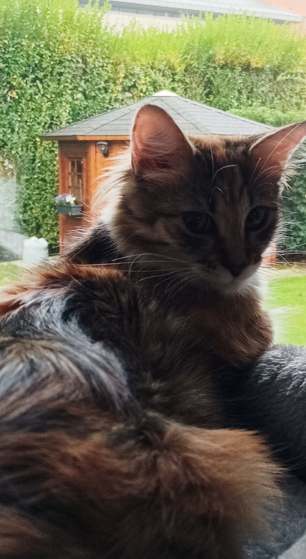 Нашата е дива на моменти,но и обича да се гуши и да я галят.Като дойде в спалнята посред нощ е много досадна,има половин свободна спалня на разположение,тя се курдисва върху мен ,и по възможност близо до  главата ми,да ми мърка на ухото.Една мискинка от мен
