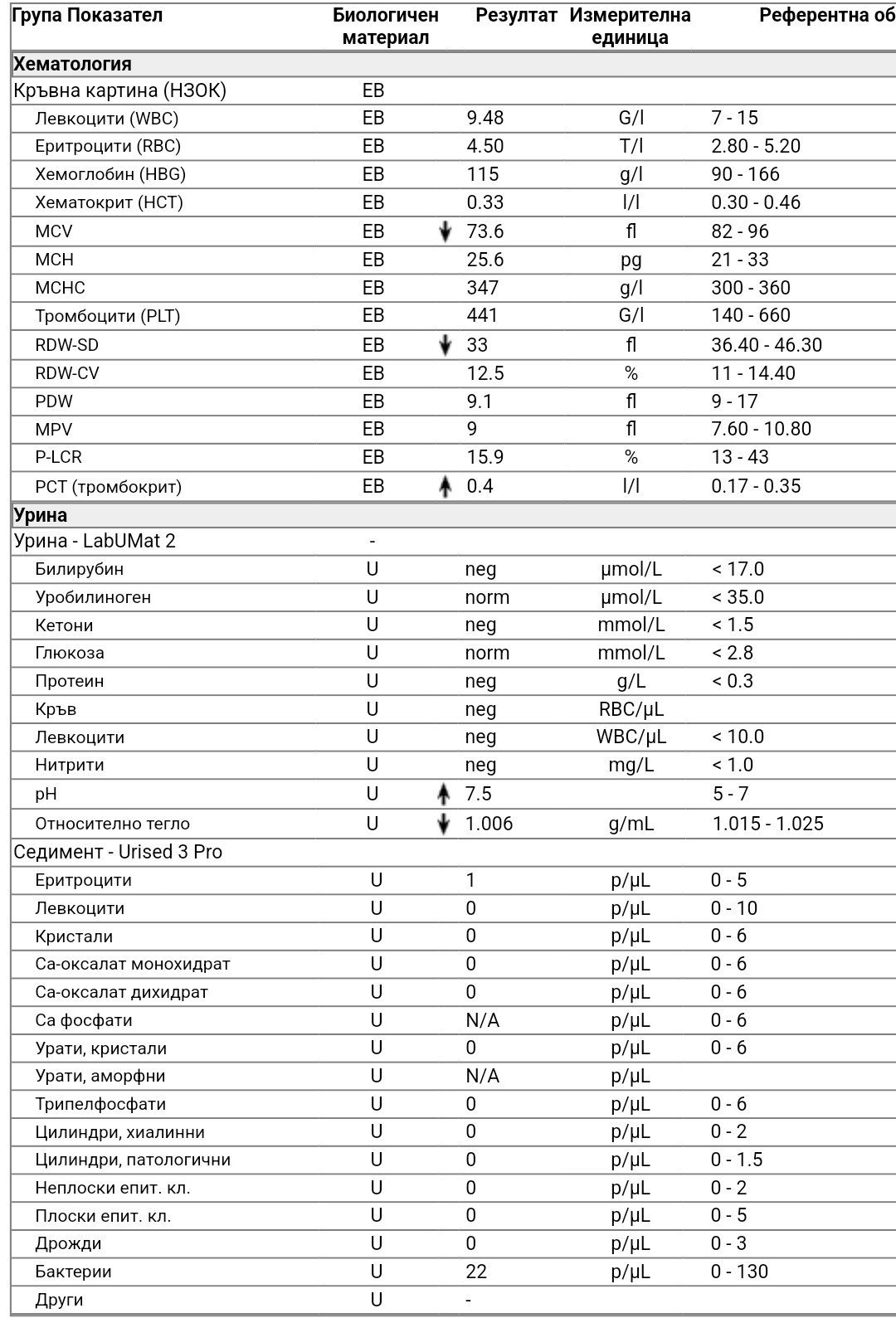 Здравейте, излязоха кръвните изследвания на Ани и се притеснявам че може да има дефицит на желязо заради ниския MCV и RDW. Как бяха резултатите при вас? Лекували ли сте подобни резултати?