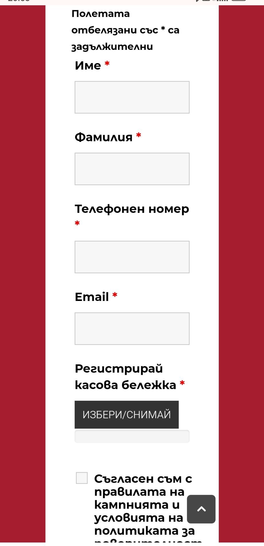 На сладки времена от събота сайта не работи. Имам от петък и събота общо 4 бележки и няма да мога да участвам. Ако ги регистрирам в понеделник няма да ги признаят . Направо си плачат за сигнал.