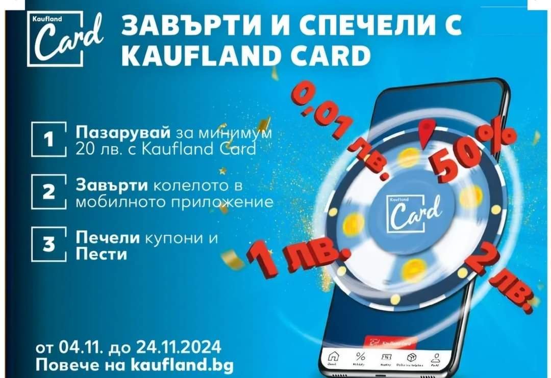 Пазарувай в Kaufland за минимум 20лв. , сканирай "Kaufland Card" , завърти колелото в мобилното приложение и играй за различни купони със отстъпки 🎅